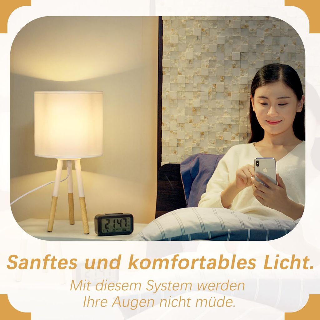 La lampe de table sur pied convient aux ampoules E27(ampoules non incluses). LIANTRAL Nachttischlampen 2er-Set, Moderne Kleine Tischlampe, Stativ Tischlampe Mit Leinen Lampenschirm Und Holzrahmen, E27 Tischleuchte Schreibtischlampe Für Schlafzimmer, Wohnzimmer, Schlafsaal Que ce soit comme lampe de chevet, sur le bureau ou comme élément décoratif, cette lampe de table compacte et polyvalente s'adapte partout. Découvrez cette lampe de table moderne de style campagnard pour votre intérieur ! Jährlich Juni Düster nachttischleuchte touch Unterscheidung aufbauen 【Simple à monter et stable】. L'abat-jour bien fabriqué en tissu naturel ne rappelle pas seulement un style de maison de campagne confortable, simple et naturel, sUn standard de qualité supérieur de l'apparence le fait paraître exquis et spécial, une lumière non éblouissante et donc plus agréable pour les yeux. ZMH Retro Tischlampe 1 flammige Vintage Nachttischlampe Wohnzimmer Tischleuchte im Industrial Design aus Metall und Holz - Schwarz - Fassung: E27 - inkl. Schalter - ohne Leuchtmittel (50CM) Sofort Lieferbar 1Angebot 36,99 €3699€ 16Punkte ZMH Nachttischlampe 2er Set Tischlampe Modern - Tischleuchte Wohnzimmer mit Stoffschirm E27 Fassung Max. 40W Weiß Nachttischleuchte Nachtlicht für... Commandez dès maintenant cette lampe de table à intensité variable et plongez votre intérieur dans une lumière chaleureuse et accueillante ! Avec un socle métallique solide et un patin antidérapant de qualité, cette lampe offre stabilité et sécurité. 【Service client】 Nous offrons une garantie de 2 ans sur notre éclairage et notre service client est aussi unique que notre design moderne de lampes - une qualité convaincante. L'abat-jour en tissu naturel confère une atmosphère chaleureuse à votre salon, salle à manger, chambre ou entrée. 【Arbre de lampe de haute qualité en tissu naturel】. 【Compacte & utilisable】 Avec une hauteur de 28 cm, la lampe de table est peu encombrante et compacte pour chaque coin de la table de nuit, du bureau, de la chambre à coucher, du salon et du bureau. L'abat-jour n'est pas seulement beau à voir, il est aussi extrêmement durable, dissipe rapidement la chaleur, absorbe peu de poussière et conserve sa forme. 【Détails techniques】 La longueur mesure :17 cm, la largeur mesure :17 cm, la hauteur mesure :28 cm, la lampe pèse:1,25 kg, l'abat-jour mesure dia : 17 cm, Contient un câble de connexion blanc de 160 cm.