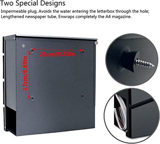 La boîte aux lettres de qualité supérieure avec compartiment à journaux est entièrement en acier, galvanisée et laquée par pulvérisation, il n'y a pas de points de soudure ou de rivets visibles. Boîte aux lettres design Chicago Edition avec compartiment à journaux - Gris anthracite RAL 7016 Gagnant du rapport qualité-prix. Boîte aux lettres Gris anthracite RAL 7016 Boîte aux lettres Boîte Notre best-seller et un véritable polyvalent. Grâce à la fente par le haut, le courrier intérieur est protégé de manière optimale contre les intempéries. Garantie générale du produit de 5 ans. Cette boîte aux lettres est un produit exclusif. Garantie 10 ans contre la rouille. Ouverture de la porte de gauche à droite., 2 clés incluses. Comprend une plaque auto-adhésive gravée en acier inoxydable., Fixations murales incluses. Le compartiment à journaux se cache discrètement dans la porte de prélèvement et peut être occupé par la gauche et la droite, grâce à sa taille confortable, il peut également accueillir de grands feuilles hebdomadaires. Boîte Aux Lettres 7016 2 Portes Boîte Aux Lettres Design HESSE 155-7016 Avec Compartiment à Journaux Au Lettre Metzler Boîte aux Lettres Murale avec Porte-nom, Design Moderne avec Compartiment à journaux Anthracite RAL 7016, Personnalisable avec Plaque Nominative en Acier Inoxydable V2A | Modèle Siebert... Ici, même les grandes lettres rentrent sans se plier. Le couvercle est sécurisé avec des tampons en caoutchouc contre les cliquetis gênants.