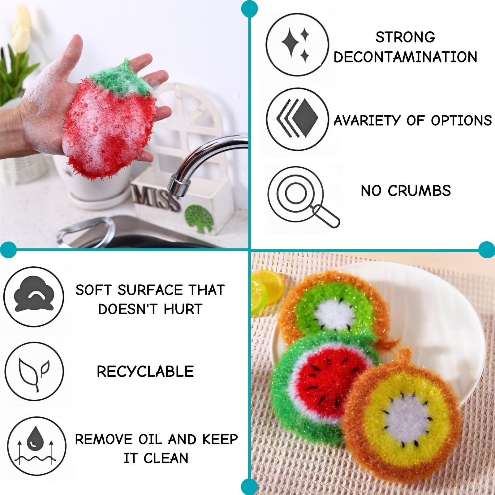 Ainsi, utiliser une brosse à vaisselle représente une option plus pratique pour nettoyer et récurer les assiettes, les casseroles, les poêles … Cet outil permet de dégraisser facilement les ustensiles sans forcément créer des rayures Les brosses à vaisselle pour laver la vaisselle sont disponibles dans des designs mignons et de nombreuses couleurs, ce qui rendra votre vaisselle et votre nettoyage amusants, faciles et agréables. Remarques : Les mesures étant prises à la main, les tailles indiquées peuvent varier légèrement. Brosse à Récurer et Éponge Écolo pour la Vaisselle - 3 Têtes de Brosse à Recurer Tout Usage Brosse à Récurer Pour Vaisselle | Nettoyage à Tête Ronavec Poils En Fibre Douce, Outil Nettoyage Pour Nettoyer La Vaisselle, Les Casseroles, Les Poêles, Les Légumes Caneem Brosse A Recurer Tout en nettoyant vos ustensiles de cuisine, ils améliorent également votre cuisine avec des torchons colorés et soigneusement conçus, ajoutant une touche de couleur vive à votre cuisine. Ils peuvent non seulement être utilisés pour nettoyer les ustensiles de cuisine, mais également nettoyer les éviers de cuisine, les casseroles en acier inoxydable, les cuisinières, les appareils électriques, les carreaux de douche, les portes en verre de douche, les baignoires, etc Contenu de l'emballage : vous recevrez 16 brosses à vaisselle au crochet anti-rayures ; il y a une variété de motifs de fruits au choix, et la quantité est suffisante pour votre usage quotidien et remplacement, ou pour partager avec votre famille, vos amis et vos aînés, c'est un choix de cadeau très pratique et surprise ; notre brosse à vaisselle égayera votre cuisine et fera ressortir votre cuisine Formes de fruits mignonnes : ces brosses à vaisselle sont tricotées à la main dans diverses formes de fruits délicieuses, telles que l'ananas, la fraise, la pastèque, le kiwi, le citron, les fruits, l'orange et l'avocat, attrayants et accrocheurs. La couleur peut varier légèrement en raison des différents affichages de l'écran. Chaque brosse mesure 24,5 cm de long - assez compacte pour se glisser partout, assez grande pour être manipulée confortablement. Utilisez-les... Caractéristiques : Matériau : fibre acrylique et fil de polyester.