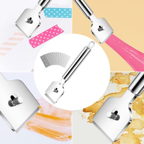 Outils de calfeutrage en silicone Outil de finition d'étanchéité... Enlève facilement les restes nourriture, les décalcomanies, les autocollants, la colle, la cire bougie, les étiquettes, le film fenêtre, la plaque, la chaux, la saleté, la peinture et plus encore., Usage:1., Faites pivoter le bouchon à vis et retirez le couvercle supérieur en alliage2., Mettez la lame dans et fixez-la solidement3., La section est l'endroit fixe la lame, le milieu est le bac stockage la lame4., Couvrez le couvercle en alliage, vissez fermement l'écrou, facile à terminer l'installationSpécification:Nom : grattoir à lame rasoir. Solide et robuste : le grattoir à verre est fabriqué en métal robuste de haute qualité, solide et durable et ne se déforme pas ou ne se casse pas facilement. Protection Plaque De Cuisson Vitrocéramique Induction Grattoir Plaque Vitrocéramique Grattoir à Peinture En Acier Inoxydable Avec 11 Lames Métalliques, Pour Cuisinière Et Verre Elimine Les Adhesifs Et La Peinture 91917687 Rasoir Plaque Induction Large gamme d'applications : outil idéal pour gratter les matériaux inutiles n'importe où, enlever les autocollants, les étiquettes, la colle, la colle résiduelle, les slogans, les décalcomanies, les étiquettes sur les voitures, le bois, les vitres. Vous pouvez mettre les lames de rechange dans la poignée afin de toujours savoir où elles se trouvent Contenu de l'emballage : 1 grattoir en vitrocéramique et 4 lames de rechange. Poignée antidérapante : le grattoir de four avec une poignée ergonomique assure une prise antidérapante et un nettoyage sans rayures pour une expérience de fonctionnement confortable. Vous pouvez l'utiliser pendant longtemps. Grattoir Pour Plaque Vitrocéramique : Grattoir Premium Pour Plaques... Matériau : acier inoxydable + alliage catalyseurTaille: 4,5 * 19 * 2 cm / 1,8 * 7,5 * 0,8 poucesListe colisage:1 * spatule nettoyage4 * lame
