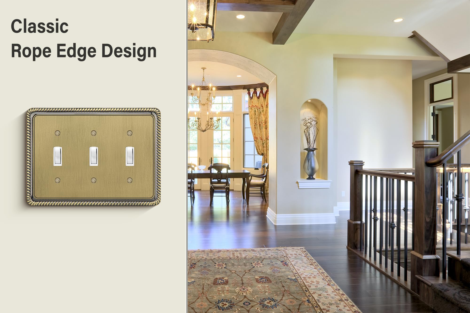 Lot de 3 plaques murales décoratives en laiton antique pour interrupteur à bascule - Plaques murales pour cuisine et salle de bain (duplex à 2 branches) Commencez à décorer votre maison avec un petit interrupteur FR: Plaque d'interrupteur à bascule en laiton antique - Plaques murales d'interrupteur à bascule en métal - Plaques de recouvrement de prise décoratives pour la maison et le bureau HTWP03E Entrepôt local Livraison : 72.3% dans les 5 jours Livraison : 72.3% dans les 5 jours 102 ventes 5.0 $9.74 Payez $2.43 aujourd'hui -42% $16.99 4 mensualités bihebdomadaires sans intérêt Couleur... Lorsque la poussière s'accumule, il suffit de l'essuyer légèrement avec des pinceaux, cela peut être le même que lorsque vous l'avez acheté pour la première fois. Avec tournevis assorti - Facile à installer : notre lot d'installation de cache-interrupteur est livré avec tout ce dont vous avez besoin pour l'installer, y compris les vis et un tournevis. Qualité supérieure et durable : la plaque murale est fabriquée en métal épais et robuste. C'est une plaque murale de style classique. Large application : différentes formes et formats : toutes les maisons ne sont pas livrées avec les mêmes plaques d'interrupteur mural, et différentes pièces peuvent également avoir différentes plaques murales. Finition en laiton antique avec un beau motif cachemire extérieur. Il vous évite de chercher un tournevis lorsque vous avez besoin de remplacer l'ancien couvercle d'interrupteur. ZILLSEA Lot de 2 plaques murales en métal duplex, 2 plaques d'interrupteur et couvercles de sortie, finition décorative en laiton antique, résistant à Lot De 3 Plaques Murales Pour Interrupteur En Métal, 1 Interrupteur à Parfaitement applicable aux maisons, bureaux, bâtiments commerciaux et autres bâtiments de différents formats.