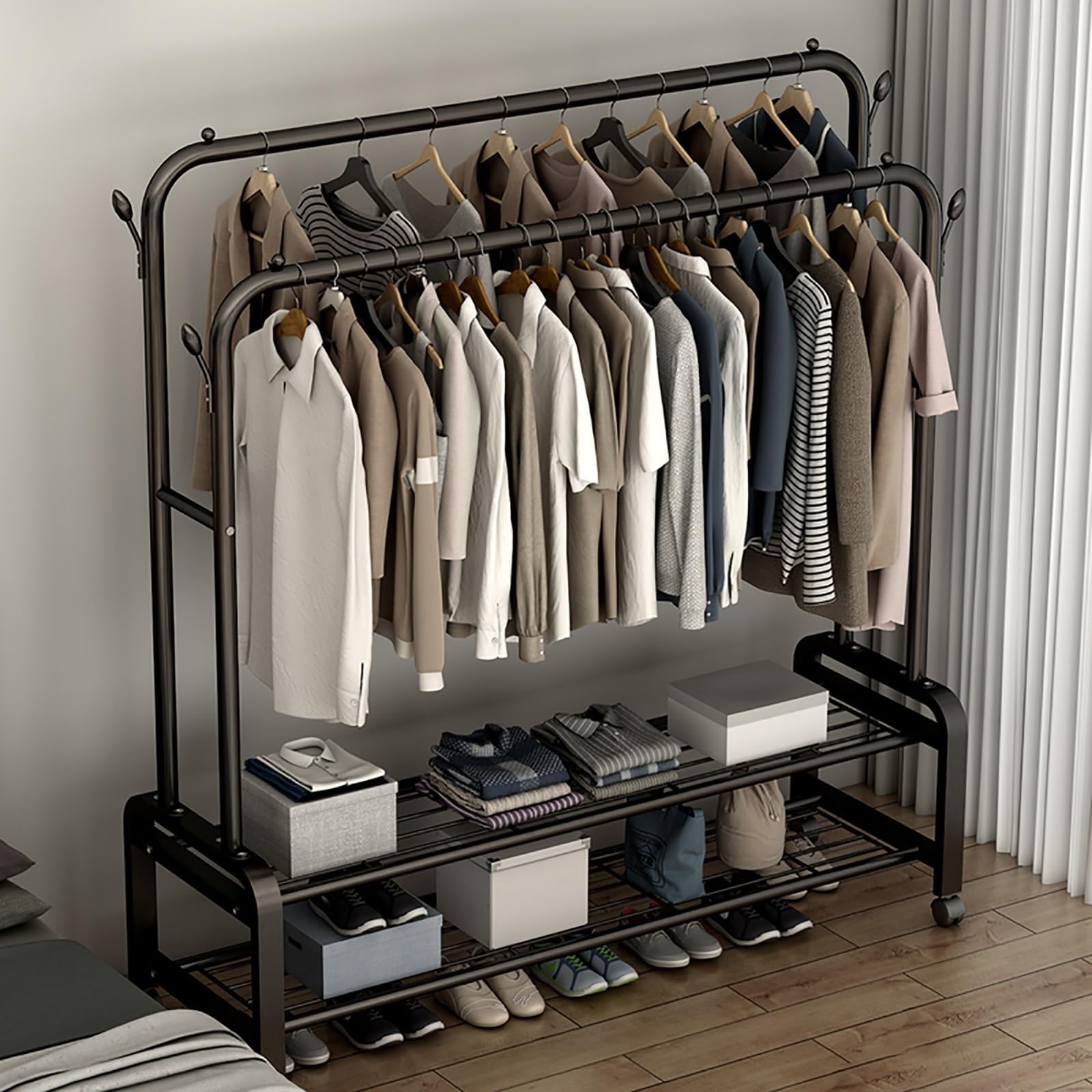Voici 6 raisons de recommander cet organisateur de vêtements : - Plus large et plus d'espace : les extensions de 112,3 cm offrent plus d'espace de suspension... De plus, l'étagère inférieure en métal hors du sol est prête pour vos chaussures, sacs et boîtes de rangement. 1 manuel de montage (français non garanti) SLEEPING LAMB Sacs à vêtements transparents extra larges de 127 cm à suspendre pour rangement de AOODA Porte-vêtements Long à Double Tringle Pour Suspendre Des Vêtements, Portant à Vêtements Robuste Avec étagères Supérieures, Armoire De Rangement Portable Avec Roues Pour Robes, Manteaux, Chemises Utilisations multiples : le portant à vêtements avec étagères est idéal pour ranger des chaussures ou des boîtes de rangement. Cette étagère à suspendre s'adapte partout où vous le souhaitez, comme votre chambre, vestiaire, buanderie ou entrée, organisez et rangez vos vêtements pour rendre votre chambre propre et propre, ou pour fournir de l'espace pour l'affichage de vêtements dans les théâtres ou les studios. Il y a deux perles antidérapantes sur le dessus de l'étagère à linge, ce qui empêche non seulement les vêtements de tomber, mais rend également le portant à vêtements plus beau. Pratique à déplacer et à verrouiller : notre porte-vêtements dispose de 4 roulettes omnidirectionnelles robustes qui facilitent le déplacement du portant à vêtements dans différentes pièces. Vous pouvez installer des porte-vêtements pour accrocher des vêtements en une demi-heure pour utiliser des pièces et des instructions détaillées dans le colis, afin que vous puissiez rapidement avoir plus d'espace pour ranger vos vêtements. Large capacité de rangement de 109 cm : ce portant à vêtements en métal de 109 x 38 x 160 cm (l x P x H) sert d'extension de votre placard... Portant de placard robuste pour accrocher des vêtements, capacité de charge de 68 kg avec des poteaux de 1,5 mm d'épaisseur, notre portant à vêtements en métal est conçu pour accrocher des tonnes de manteaux d'hiver lourds, vestes, costumes, pulls., Matériau : métal., Dimensions : 109 x 38 cm., « P x 60 » H., Couleur : noir., Contenu : 1 support.