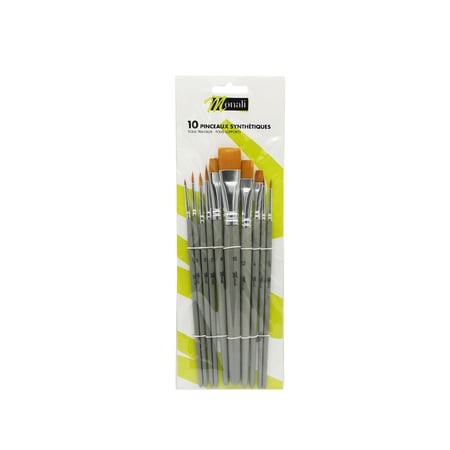 Série 202 poils de poney - OZ International - Matériel et fournitures pour loisirs créatifs Lot de 10 tailles différentes (n° 2, 4, 6, 8, 10, 12, 14, 16, 18 et 20) en poils de porc blanchis de qualité supérieure TSI Lot de 10 pinceaux Lot de 10 pinceaux, composé de 10x pinceaux (taille : 2, 4, 6, 8, 10, 12, 14, 16, 18 et 20), avec virole en aluminium sans soudure et manche en bois nature Pinceau Brosse N 10 TSI Set De Pinceaux De Peinture, Lot De 10, Tailles | FindTheDeal Pinceau Plat Poils ou poils de qualité supérieure. · Différentes tailles. · Manche naturel ou laqué · La pointe du pinceau est fixée sans couture avec une virole en aluminium Idéal pour l'école, les loisirs et le travail