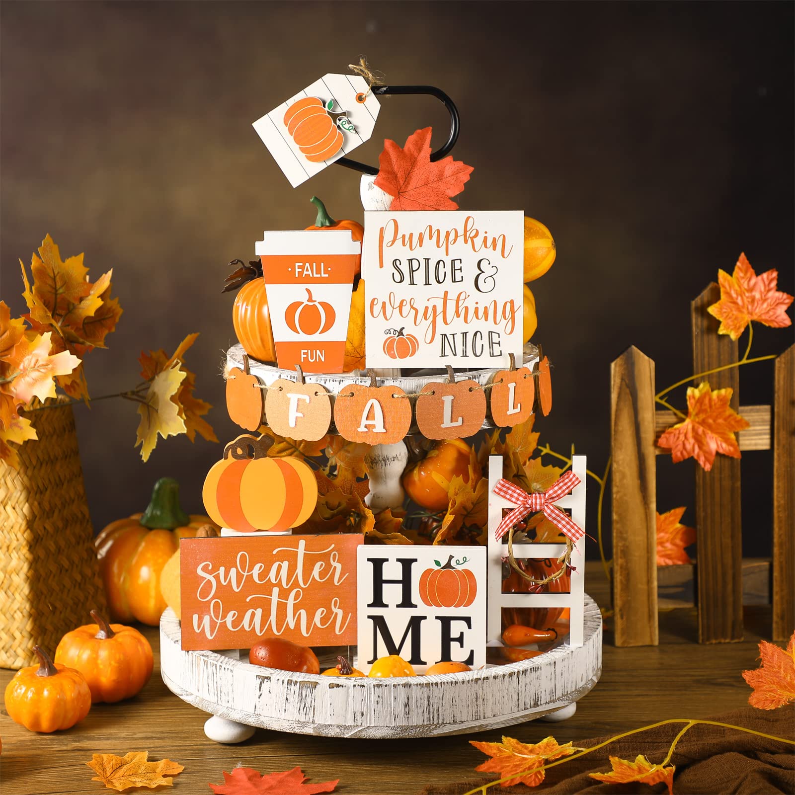 Lot De 13 Plateaux Décoratifs D'automne En Bois De Récolte Avec Feuilles D'érable Pour La Ferme De Thanksgiving (style Classique