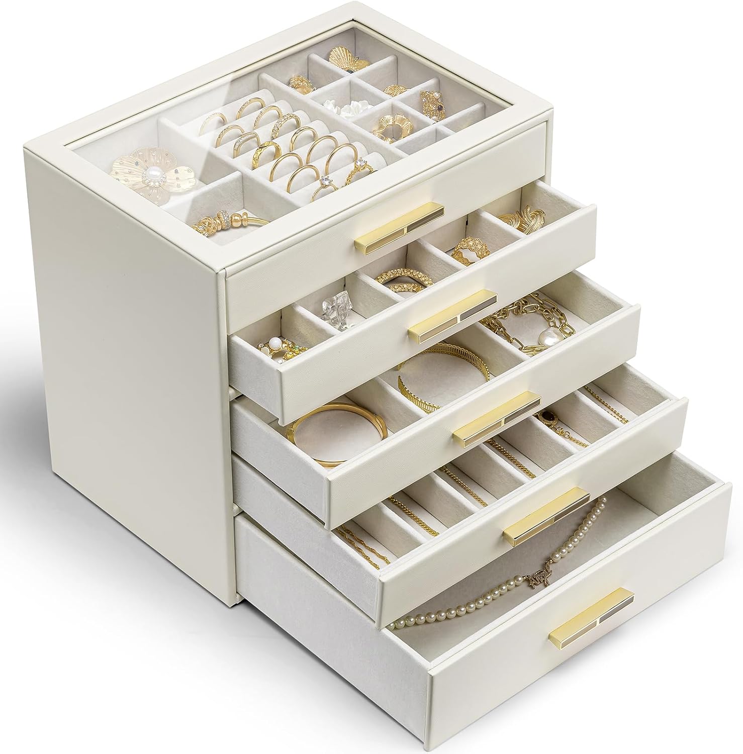 Storgae à 5 couches : cette grande boîte à bijoux pour femme allie durabilité et style, avec une base en cuir synthétique et un couvercle en verre transparent. Nos 5 meilleurs Vlando Boite A Bijoux - Noël 2025 | meilleurs Avec ses 2 niveaux spacieux, vous pouvez organiser bagues, boucles d'oreilles, colliers, bracelets et montres sans tout mélanger. Le plateau amovible et les... Utilisation polyvalente : plus qu'une simple boîte à bijoux, cet organisateur de qualité supérieure garantit que vos pièces résistent à l'usure quotidienne. Idée cadeau : vous avez du mal à trouver un cadeau significatif ? Ce luxueux organisateur de bijoux blanc pour femme est la surprise parfaite pour les anniversaires, les vacances ou les anniversaires. Le design innovant à 5 couches met en valeur votre collection à travers le couvercle de la boîte à bijoux en verre, mais protège également les colliers, bagues et bracelets de la poussière. Avec couvercle en verre : fabriquée à partir de cuir synthétique et de verre résistant aux rayures, cette boîte à bijoux blanche offre une double fonctionnalité : le couvercle transparent préserve l'éclat de vos bijoux tout en permettant une visibilité instantanée. Le couvercle en verre anti-poussière et la construction robuste en font une boîte à bijoux durable assez grande pour stocker des colliers superposés, des bracelets épais et des boucles d'oreilles délicates. Ses compartiments spacieux garantissent que vos pièces préférées restent organisées, ce qui permet de trouver facilement des accessoires en une seule fois, parfait pour passer à une boîte à bijoux pratique et luxueuse. Son design sophistiqué plaira aux partenaires, amis ou mères qui chérissent à la fois praticité et beauté. Cadeau Pour Femme – Boîte À Bijoux Avec Couvercle Bandes De Cheveux... Boite A Montre Femme Vlando Boîte à Bijoux à 5 Couches Pour Femme, Couvercle En Verre Organisateur Bijoux Offrez-vous ou offrez à un être cher une mise à niveau intemporelle, où la fonctionnalité rencontre l'élégance intemporelle.