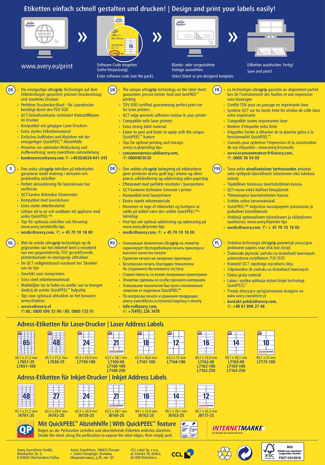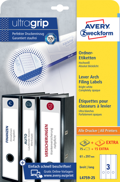 L476010:Avery Zweckformft L4760-100 étiquettes pour classeurs à levier... Non seulement ces étiquettes sont fabriquées à partir de papier recyclé blanchi sans chlore, mais pendant le processus de fabrication, tous les déchets sont entièrement recyclés. 192 x 38 mm, permanent, quatre étiquettes par feuille, 700 étiquettes par paquet , Impression JamFree Modele Etiquette Etiquettes Laser Pour Chemises Et Classeurs 134 X 11 - Avery L7170-25 Avery étiquettes L'emballage est en carton recyclé, leur production a évité une déforestation supplémentaire et consommé moins d'eau. Gagnez du temps avec le logiciel de modèle gratuit et facile à utiliser : Avery design et impression Étiquettes Rectangulaires Blanches Étiquettes rectangles disponibles dans une grande variété de tailles et de matériaux adaptés à tous les types de projets. Choisissez parmi une gamme d’options standards, durables, sur pellicule, papier, écologiques et bien plus encore Etiquettes d'expédition | L7168-100 Versions étroites et larges pour tous les types de fichiers Les bords spéciaux sur la feuille d'étiquettes garantissent qu'il ne reste aucun résidu d'adhésif sur votre imprimante Elles sont optimisées avec toutes les marques d'imprimantes laser et compatibles imprimante jet d'encre. Idéal pour étiqueter vos classeurs à levier étroits d'une taille de 38 x 192 mm avec sept étiquettes par feuille.