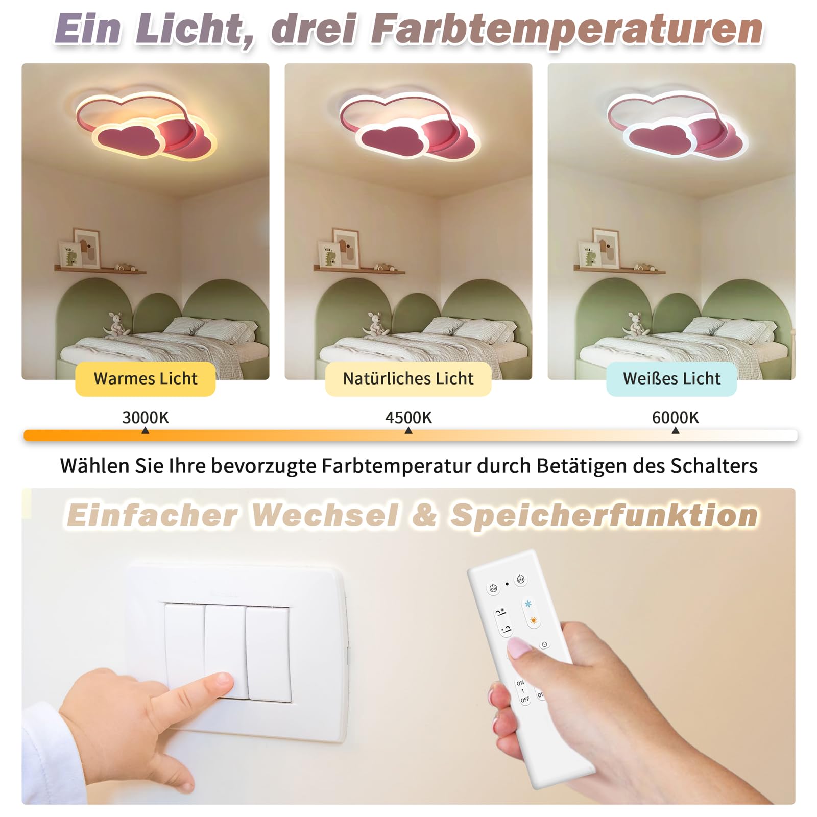 Convient à une variété d'espaces tels que le salon, la chambre à coucher, la chambre d'enfant et le bureau, et peut également être utilisé comme une lampe murale, ajoutant un sens moderne et pratique à votre maison. Design tendance : le plafonnier a un design à double anneau et le corps de la lampe blanc est assorti à des panneaux décoratifs en bois, l'apparence simple et à la mode s'adaptera très bien à votre style de décoration. ⬬ Fonction dimmable : avec la télécommande, vous pouvez régler la luminosité du plafonnier dans une plage de 10 % à 100 %, et la température de couleur de la... Plafonnier Led Luminaire Plafonnier Enfant Dimmable Plafond Encastré Design Multiples: Le plafonnier LED combine une surface plate et une décoration en bois, simple mais sans perte de style. Nuage Led Plafond Plafonnier LED, Nuages, Plafonnier, Dimmable Avec Télécommande, 26 W, 3000-6500 K Plafonnier Chambre Garçon Excellent corps en bois d'hévéa avec une texture claire et naturelle. Couleur et luminosité réglables : Ce plafonnier LED est entièrement réglable entre les couleurs blanches, naturelles et chaudes (3000K-6000K MatéRiau de Qualité: Mesurant 43 x 40 x 4,5 cm, elle est fabriquée en acrylique et en bois de haute qualité. LED Énergétiques: Utilisant des puces LED de haute qualité, la puissance de 24W, le taux d'économie d'énergie peut atteindre 80%, et la durée de vie est jusqu'à 40 000 heures, ce qui garantit que vous pouvez profiter d'un effet d'éclairage lumineux et économe en énergie pendant une longue période.