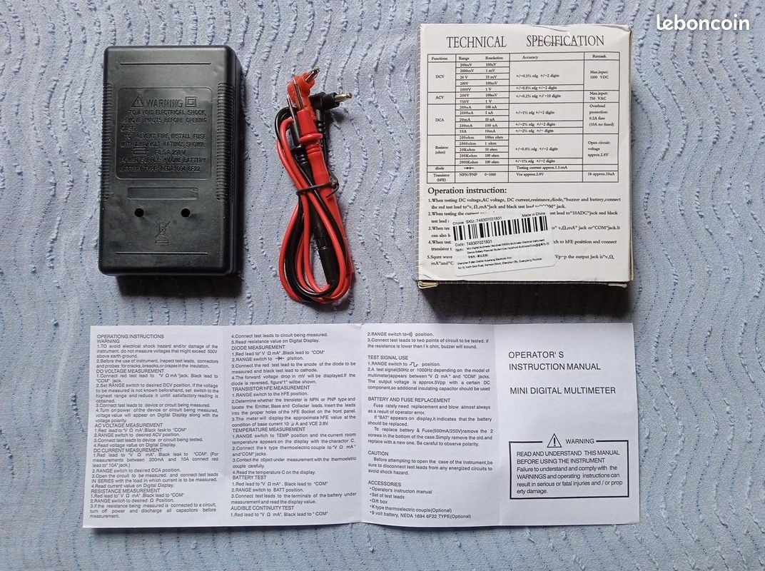[AFFICHAGE CLAIR ET PRÉCIS] - Le grand écran garantit des données claires et précises, avec une valeur d'affichage maximale de 1999., [PROTECTION CONTRE LES SURCHARGES] - La conception du circuit de protection contre les surcharges à récupération automatique améliore la sécurité et la durabilité. Appareil à Tension Multimètre Numérique DT830D Avec écran LCD, Ampèremètre Numérique Avec Noir, Multimètre Numérique Pour Automobile Et Ménage Appareil Pour Mesurer La Tension Tension AC : 200 V/750 V Description du produit Spécifications : Condition : 100 % neuf EPCOS B85321-A4504-A750 EMC Filter, 75 A, 480V AC, 750V DC [PERFORMANCE SUPÉRIEURE] - Cet outil offre des performances supérieures et est idéal pour les laboratoires, les usines, les passionnés de radio et les familles. Test de température : -40-1000℃ Modèle: DT-830B Courant alternatif maximum: 10A Plage de tension ca maximale: 1000V Plage de tension cc maximale: 750V Mesure de résistance: gamme 200 Ohm-2000K ohms Alimentation: batterie 9V (non incluse ici) Couleur: noir Taille: Env. 123x67x20mm Tension cc: 200mV 100uv ± (0.5% 2) 2000mv 1mv 20v 10mv 200v 100mv 1000v 1v ± (0.8% 2) Tension ca: 200V 100mv ± (1.2% 10) 750v 1v Courant... Courant DC : 200uA/2000uA/20 mA/200 mA/ 10A Type d'élément : Multimètre numérique DT-830B multimètre numérique LCD Mini déterminer multimètre pour voltmètre ampèremètre AC/DC 750/1000V Ohm testeur mètre avec sonde Matériau : Plastique + Caoutchouc, Couleur : Noir, Affichage maximum : 1999 Taille : environ 12,4x6,9x2,4 cm / 4,9x2,7x0,9 pouces (L x l x H) Résistance : 200Ω/2kΩ/20kΩ/200kΩ/2000kΩ, Transistor : NPN, PNP Liste des paquets : 1 x multimètre, 2 x cordons de test [MESURES POLYVALENTES] - Mesurez la tension AC/DC, le courant DC, la résistance et les transistors.
