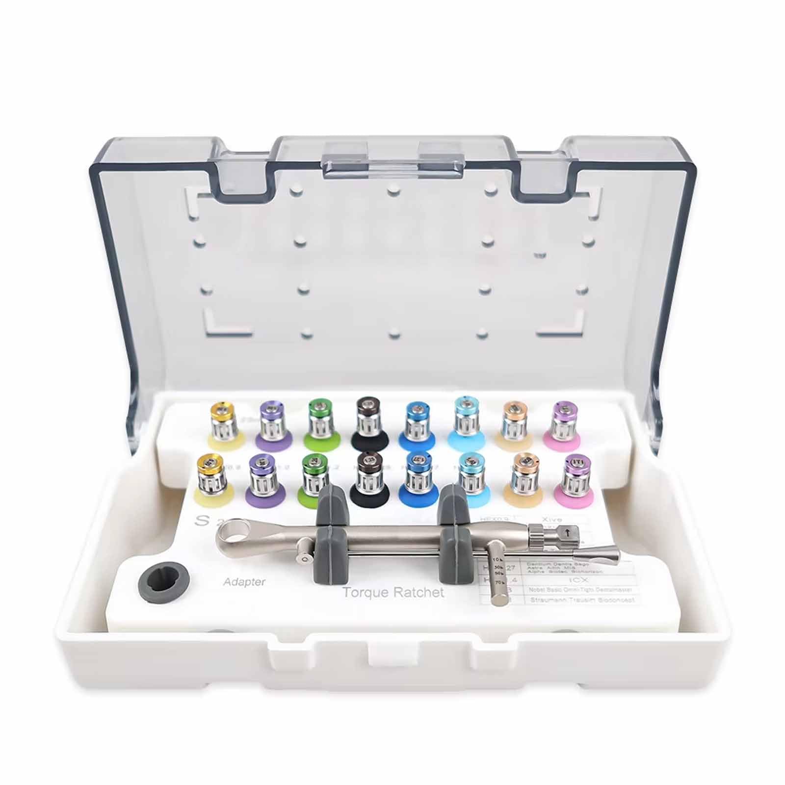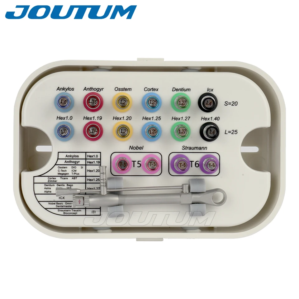 Meilleur design : le kit de réparation universel d'implant dentaire a été spécialement conçu avec une poignée ergonomique pour augmenter le confort de préhension, réduire efficacement la fatigue lors de l'utilisation et ne tombe pas facilement. Système de couple de précision : Ce kit d'implants dentaires offre un réglage précis du couple pour la sécurité du patient. Ce système est l'équivalent précis d'un tournevis en soins dentaires, garantissant que chaque vis est serrée ou desserrée à la valeur correcte pour une restauration implantaire sûre, garantissant ainsi la... Le kit de réparation d'implant dentaire a une forte polyvalence, compatible avec Aozhitai, Denten, Sterman, Dolar, Dior, Aden et ainsi de suite. Le design coloré du kit universel de réparation d'implant dentaire vous aide à trier différentes tailles de disques. Kit Universel De Clés Dynamométriques Pour Implant Dentaire Avec Tournevis à Cliquet Réglable à Couple Réglable, 16 Pièces, Entièrement Autoclavable, 10-70 Ncm, Sécuriser/démonter Les Restaurations Clé pour implants dentaires à cliquet - Torque ratchet 15 - 60 Ncm - Heliocos GmbH - dynamométrique / pour implants dentaires / réglable La boîte est fabriquée en matériau de haute qualité. Vente en ligne de Clé pour Implant Dentaire en promotion pour tous les cliniques dentaires et les laboratoires avec les plus bas prix et les meilleurs qualité. Le kit de réparation d'implant dentaire est compatible avec presque toutes les marques d'implants. Gagnez du temps et ajoutez également une couleur de guérison à votre environnement. Nous fournissons des Tournevis d 【Large application】- L'ensemble d'outils de réparation universel de clé dynamométrique prothétique dispose de 16 tournevis pour la plantation et la réparation, les techniciens préparant des couronnes et plus encore. Serrez/desserrez la vis à la bonne valeur de couple pour fixer/enlever la restauration de l'implant. Applicable aux cliniques dentaires, hôpitaux dentaires, etc. Le kit de réparation d'implant dentaire universel a les caractéristiques de haute résistance, de résistance à la corrosion, de résistance à l'usure et de résistance aux hautes températures. Le couple peut obtenir un rebond indépendant, pas facile à déformer, et maintenir la précision du couple pendant une longue période.
