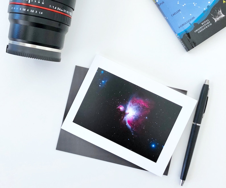 Carte de vœux de haute qualité imprimée sur une carte d'origine durable. Dimensions : 17,5 x 12,5 cm (6,8 x 4,9 pouces). Impression de haute qualité sur une carte haut de gamme de 280 g/m². Vide à l'intérieur pour votre propre message personnalisé. Wee Blue Coo Greetings Birthday Gift Space Infrared View Orion Nebula Sealed Greeting Card Plus Envelope Blank Inside Cadeau Espace Vue You're One in a Million Illustrated Card // 1canoe2 Impression de haute qualité sur une carte premium de 280gsm.