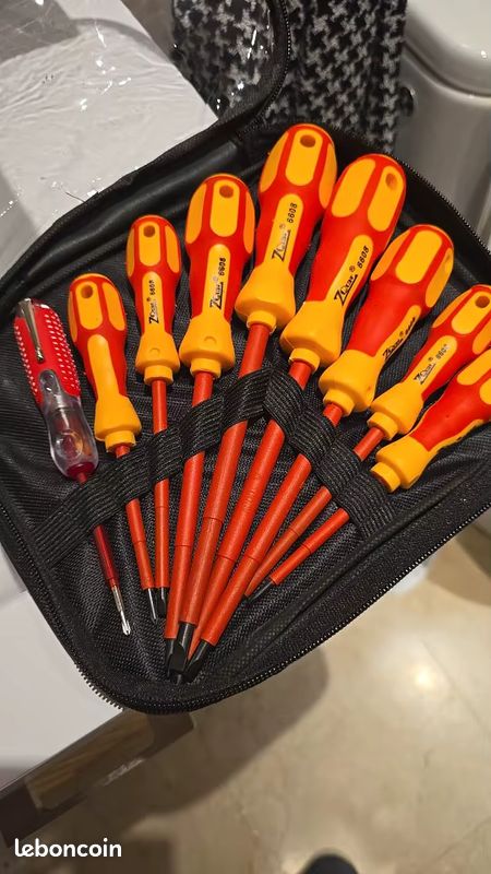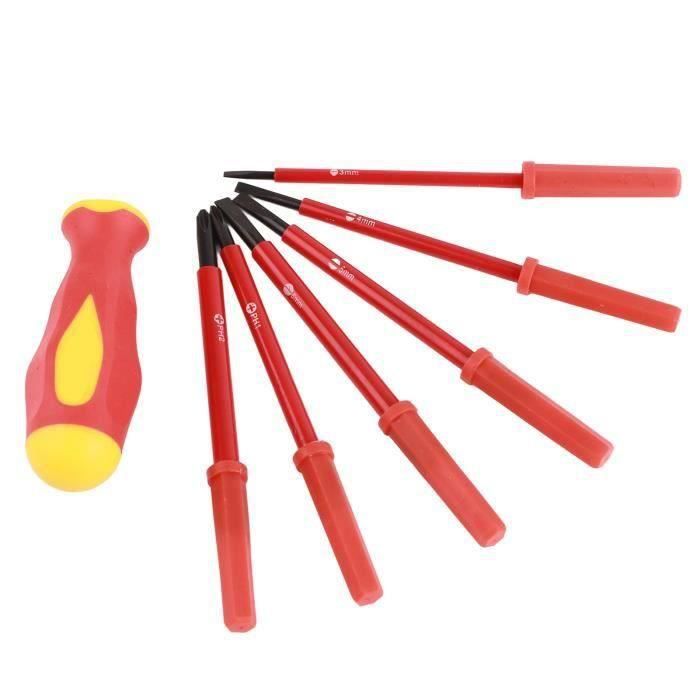 Fonctionnalités:1., Poignée ergonomique pour un maximum de confort et de torsion exceptionnelle., 2., Comprend divers types de bits pour répondre aux différents besoins en électricité., 3., Contient des conseils magnétiques, attire facilement les vis., 4., L'ensemble d'emballage de tige, ne laisser subsister que la longueur requise du travail, l'amélioration de la capacité d'isolation et de la sécurité du travail en direct efficacement., 5., Sac d'emballage est fait de haute résistance et de la qualité de l'environnement et en plastique toile, facile à prendre et chercher en fonctionnement. Kit de tournevis magnétiques 7 en 1 isolés tournevis isolé par... ➤6PCS TIGE DE TOURNEVIS - Comprend 6PCS différents types d'embouts pour répondre à différents besoins électriques et de bricolage Tournevis Y Jeu De Tournevis Isolés , 12 Pièces, Tournevis électriques Tournevis étoile ➤UTILISATION LARGE - Jeu de tournevis multifonction pour une utilisation intensive pendant le bricolage, l'assemblage de meubles emballés à plat, l'entretien, la réparation et les travaux électriques. Tournevis porte-embout PocketMax® isolé 1000V avec 4 embouts isolés... Jeu de 7 tournevis électricien GSFIXTOP ➤LONGUE DURÉE - Fabriqué en acier au chrome vanadium, trempé pour une résistance maximale à l'usure. 254GLe forfait comprend:6 x Tournevis Rod1 x Poignée1 x Sac