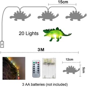 Cette guirlande lumineuse avec dinosaures est conforme aux normes CE et IP20, pour une utilisation en intérieur Guirlande Lumineuse Diplodocus avec 20 micro LED blanc chaud (2700-3300K)La guirlande lumineuse mesure 2,85m de longueur et 0,50m de câble d'alimentation et les dinos en bois : 3,5cm (h) x 5cm (L)La guirlande de dinos avec LED blanc chaud nécessite 2 piles AA / LR06 qui ne sont pas inclusesLa guirlande est caractérisée par une option de... Guirlande Lumineuse 3 Mètres YATOSEEN Guirlande Lumineuse LED Dinosaure - 3M Avec 20 LED Et Télécommande - Décoration Enfant Intérieur/Extérieur Guirlande Pokemon Lumineuse La guirlande est caractérisée par une option de fonction minuterie de 6h ON et 18h OFF ou autrement laissez-la sur ON pour une illumination sans interruption Parapluie Enfant Lights4fun Guirlande Lumineuse 20 Dinosaures En Bois à Micro LED à Cadeau Ado Fille Ce défilé de petits dinosaures en bois va trouver le chemin de votre maison. Ce joyeux trio vert peut être facilement installé, de par sa conception à la fois mince et légère, autour d'un montant de lit ou librement arrangé au milieu d'une étagère de livres. Insérez simplement 2 piles AA / LR06 dans le boîtier et les 20 dinosaures sont prêts à illuminer l'espace de leur... Ultra légère et flexible avec sa longueur de 2,85m elle peut être posée sur une étagère par exemple, pour l’illuminer insérez 2 piles LR6/AA dans le petit boîtier à piles et si vous souhaitez vous pourrez utiliser la fonction de minuterie de 6h pour prolonger la durée de vie des piles. Guirlande Lumineuse Diplodocus avec 20 micro LED blanc chaud (2700-3300K)