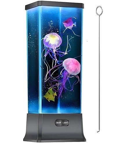 LAMPE AQUARIUM JELLYFISH 30CM - La Chaise Longue Lampe à lave USB LED Jellyfish - EUR 54,52.À VENDRE! C'est le choix de cadeau parfait pour les enfants, les adultes ou ceux qui souhaitent réduire l'anxiété ou favoriser la relaxation. Découvrez la vue fascinante de 2 méduses incroyablement réalistes flottant gracieusement alors qu'elles illuminent le réservoir, créant une expérience apaisante et relaxante. Lampe à lave Jellyfish, excellent cadeau pour les adultes, les enfants, les amoureux ou toute personne qui aime les aquariums. Couleur comme indiquéTaille : 11,6 x 11,6 x 30,5 cm Poids : 566 grammes La conception de la sortie d'eau a été modifiée et une plaque de fond en acrylique a été ajoutée pour empêcher les méduses de se coincer Cette lampe méduse est si facile à installer et dispose également d'un moteur sans balai longue durée et d'un couvercle rotatif à 360° étanche, permettant aux méduses de flotter librement tandis que l'eau reste bien fermée Ensemble de lumières d'ambiance méduses : le lot complet comprend 2 méduses, un câble USB, une télécommande et des instructions (français non garanti). L'interrupteur active un cycle automatique à travers 7 couleurs préprogrammées. La sortie d'eau et le fond en acrylique empêchent les méduses de se coincer La télécommande sans fil de 10 m incluse vous permet de personnaliser les effets d'éclairage, en choisissant parmi 17 couleurs, 4 modes et 3 niveaux de luminosité ! Lampe Poisson Tube Lumineux AONESY Lampe Meduse Aquarium,Lampe Lave 17 Couleurs Avec Télécommande, Lampe Relaxante Meduse Lampe Aquarium Jellyfish La lampe méduse est rechargeable, mais peut également être alimentée par des piles, ce qui la rend facilement portable - idéale pour les vacances ou pour se déplacer entre les pièces. Lumière méduse rechargeable : alimentez l'ambiance avec le câble de charge USB pratique ou le fonctionnement à piles (piles non fournies). Cette lampe méduse cool peut basculer entre 17 options de couleur, 4 modes clignotants et 3 niveaux de luminosité pour des effets personnalisables Tout ce dont vous avez besoin pour des effets d'éclairage fascinants que les enfants et les adultes vont adorer Bruit initial : lors de la première utilisation, l'air passant à travers la pompe à eau provoquera un bruit silencieux.