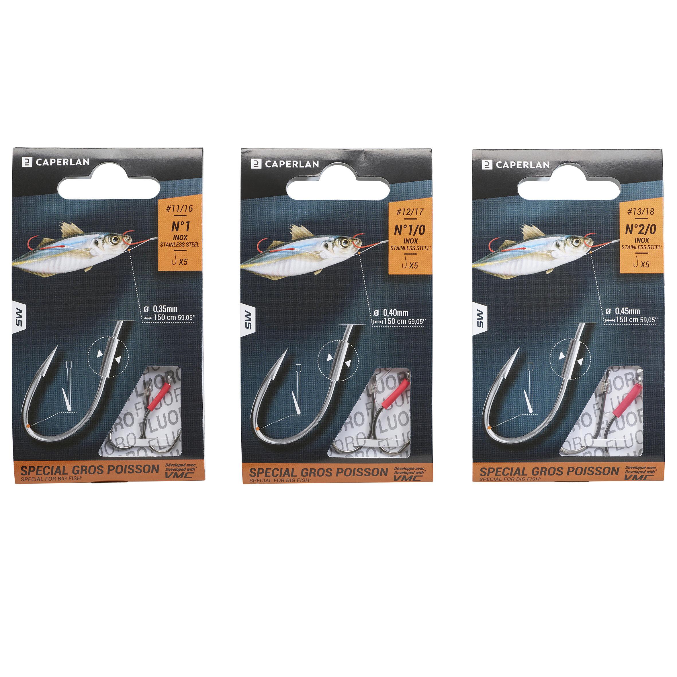 Différentes tailles avec charge max de 20kg à 80kg. Parfaits pour le bar, la truite, le saumon, etc. Que tu utilises des leurres durs ou souples, ces hameçons... Lot de 10 hameçons en acier inoxydable pour la pêche en mer et les poissons Caractéristiques : Fabriqué en acier inoxydable, antirouille et résistant à la corrosion. Peut être utilisé pour les appâts de pêche au calmar. Hameçons Poissons Blancs | Pacific Pêche Topind - Gros Hameçons 7731 En Acier Inoxydable Pour Pêche En Mer (thon Et Requin), 16/0 2pcs Contenu du paquet : 10 crochets en forme de calamar. Merci de ne commander que si vous acceptez cette marge d'erreur. Remarque : Les mesures étant prises à la main, les tailles indiquées peuvent varier de 1 à 2 cm. Diamètre : 15 mm / 17 mm / 21 mm / 28 mm. Poids léger pour un transport et un rangement faciles et pratiques à l'extérieur. En acier inoxydable ultra-résistant, ils vont accrocher le thon comme jamais. Ce qu'on aime : - Pointe longue et tranchante comme un rasoir - Anneau solide pour... Hameçons multiples, spécialement pour la pêche au pieuvre et au calmar.