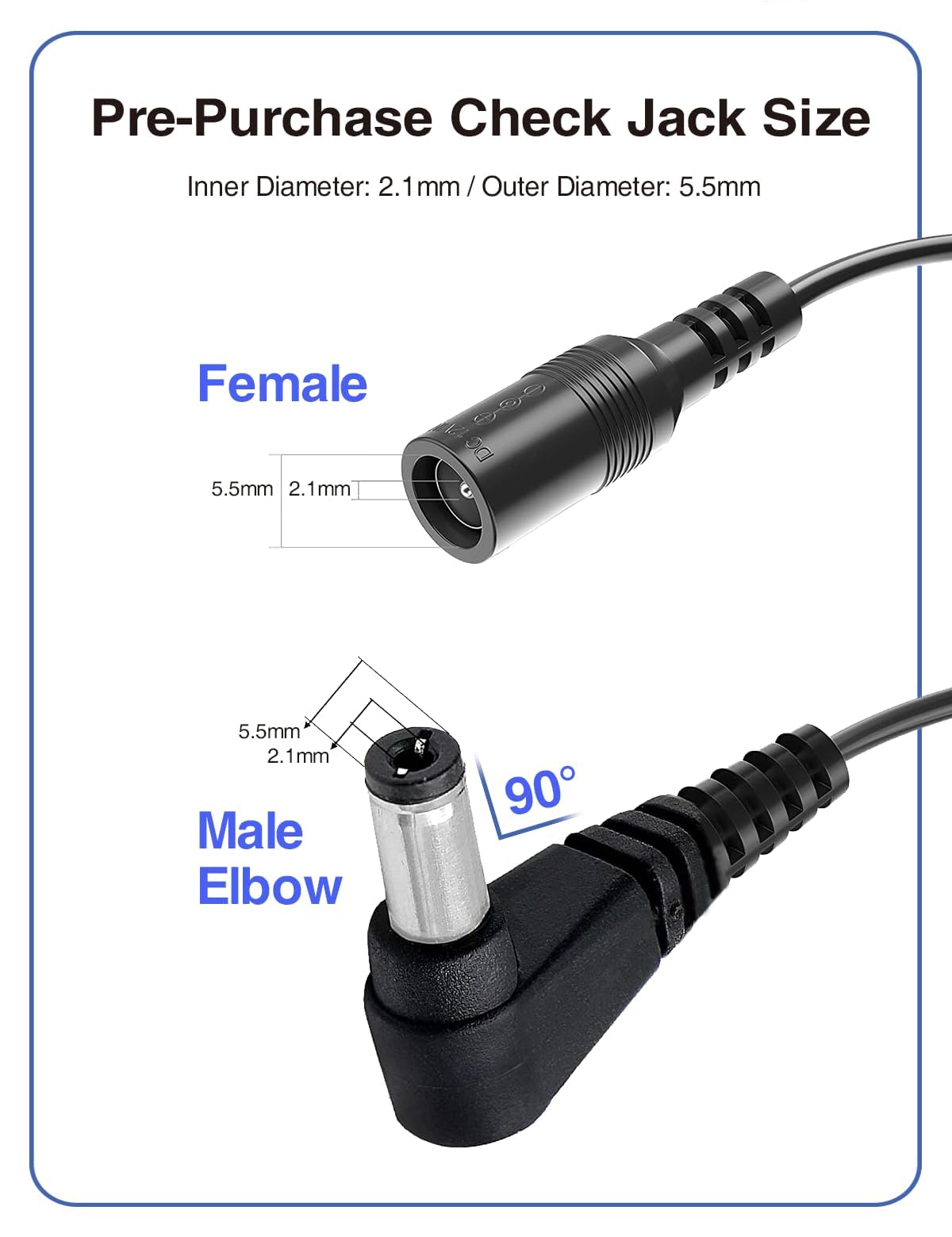 【Restez puissant en continu】 : ce câble d'extension d'alimentation CC pour 6 V, 9 V, 12 V, 15 V, 18 V, 24 et 36 V CC/CA avec connecteur d'alimentation de 5,5 x 2,1 mm, qui peut connecter vos lampes solaires et panneaux solaires pour recevoir plus de lumière solaire pour les inondations solaires et les projecteurs solaires, avec un adaptateur MC4 à 2,1 mm., 1 mm., Câble d'ensiensi Selon la mesure réelle, les câbles d'extension CC grand public du marché peuvent être utilisés avec notre adaptateur secteur d'origine pour alimenter la caméra afin de prolonger le câble d'alimentation Il protège également le câble contre le pliage et les dommages, prolongeant ainsi sa durée de vie. Zosi Camera Câble D'alimentation 5.5/2.1mm Mâle Vers 5.5/2.5mm Mâle Pour Meade / IOptron Ou Camera Zosi Veuillez nous contacter si vous avez des questions. Achetez VOLTKARE Câble d'extension d'alimentation CC 2 pieds 0,6 m 5,5 mm x 2,1 mm avec 1 femelle vers 2 mâles à angle droit à 90 degrés pour bande lumineuse... Alimentation CC 5,5 x 2,1 mm mâle 90 ° Câble de connecteur 【Service de satisfaction】: Nous offrons un service de garantie de 12 mois, une politique de retour inconditionnel de 1 mois et une assistance par e-mail 24 heures. Avertissement chaleureux : le câble d'extension d'alimentation CC à angle de 90 degrés vous permet de vous connecter à un petit espace, résolvant l'embarras d'un espace limité entre les appareils.