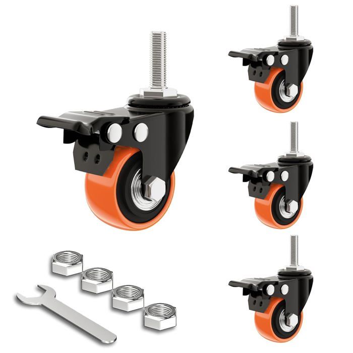 ✅ [Ø 40 MM DIAMÈTRE DES ROULETTES POUR DES CHARGES JUSQU'À 25 KG / ROULETTE] Tu veux pouvoir déplacer tes meubles comme une commode, une armoire, etc. Lot de 4 roulettes pour meubles - Couleur : noir - Diamètre : 40 mm - Hauteur totale : 53 mm - Plaque de fixation : 38 x 38 mm - Rotation à 360 ° - Roulettes pivotantes avec Vis Vous voulez pouvoir déplacer vos meubles et jardinières sans beaucoup d'efforts ? Ensuite, montez ces roulettes pivotantes avec un tournevis ou un tournevis. Roulettes Pour Meubles Roulettes De Meuble De 40 Mm Avec 4 Freins, Kit De Roulette Leroy Merlin Ces roulettes de meubles sans filetage peuvent être vissées sans grand effort. Utilisez les rouleaux de transport dans la maison, l'atelier et l'industrie., . Roulettes de meuble - A239 - 50 mm - 2 freins - 4 pièces - Charge max Les roulettes pivotantes robustes fonctionnent en douceur, sans bruit et sans rayures sur la plupart des revêtements de sol. Emuca - Lot de 4 roulettes pivotantes pour meuble 50mm, 2 avec frein et 2 seins frein, plaque de fixation et roulement à billes, caoutchouc, gris 4,6 (10,1 k) Plus de 200 achetés au cours du mois dernier 1278€ Conseillé ✅ [ROULETTES DE TRANSPORT AVEC FREIN MANŒUVRABLE - À LA MAIN OU AU PIED] Les roulettes pivotantes noires peuvent être stoppées à tout moment à l'aide du frein. ✅ [LIVRAISON] 4 pièces de roulettes en nylon, en noir, avec 16 vis à bois M4*16mm. - Roulettes pivotantes noires pour meubles à visser - Patins en bois multifonctionnels inclus dans le kit - Roulettes de protection du sol pour montage avec tournevis ou tournevis – Montage rapide et avec peu d'outils - Composants de haute qualité – Roues faciles à dérouler adaptées à la plupart des sols - Les roulettes pour meubles sont silencieuses et ne rayent pas le sol - Les roulettes pour sols durs ne conviennent pas pour les moquettes moelleuses Mini roulette pour charges lourdes - roue en polyuréthane - noir - de... Jeu de 4 roulettes 40 mm pour meubles. sans trop d'efforts ? Alors visse ces roulettes pivotantes sur les pieds des meubles. Détails des tailles des roulettes d'établi version 1 : - Taille de la plaque à vis: 38 x 38 x 1 mm - Diamètre du rouleau : 40 mm - Largeur des roues : 30 mm - Hauteur de montage : 53 mm - Diamètre du trou de montage : 4 mm - Charge maximale par rouleau : 25 kg (ensemble total : 75 kg)