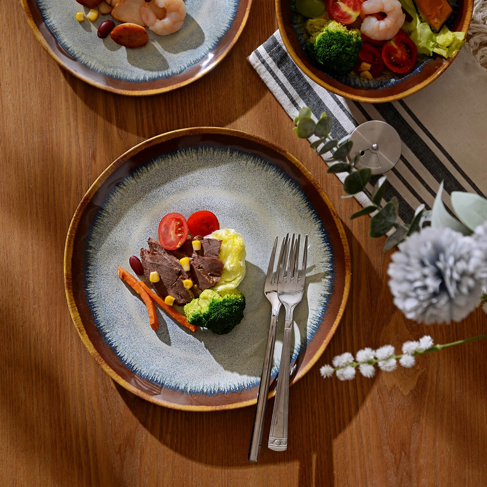 Cet ensemble de vaisselle en mélamine comprend : 4 bols de 15,2 cm, 4 assiettes à salade de 22,2 cm, 4 assiettes plates de 27,3 cm. Pratique et pratique : cet ensemble de vaisselle est facile à empiler pour économiser de l'espace dans votre cuisine, bio avec un style en forme de bord, assez profond pour les collations, la salade, la soupe, les pâtes, les fruits, les gâteaux, les desserts, etc Meilleur cadeau : cet ensemble de vaisselle est parfait pour toutes sortes de cadeaux de vacances, vos amis et votre famille seront surpris et adoreront ce cadeau lorsqu'ils le recevront. Gibson Home Ensemble De Vaisselle De 12 Pièces En Mélamine Et Paille Gibson Home Candy Skies - Extérieur, Camping Et Usage Quotidien - Canada Si vous avez des questions ou des questions de qualité sur notre vaisselle ou si vous avez reçu des produits endommagés. Va au lave-vaisselle · Résistant à l'écaillement · Empilable · Sans BPA · Résistant aux égratignures · Service pour: 4 · Mélamine... Certified International Service de vaisselle 12 pièces en Veuillez nous contacter pour obtenir de l'aide. Ne passe pas au micro-ondes.