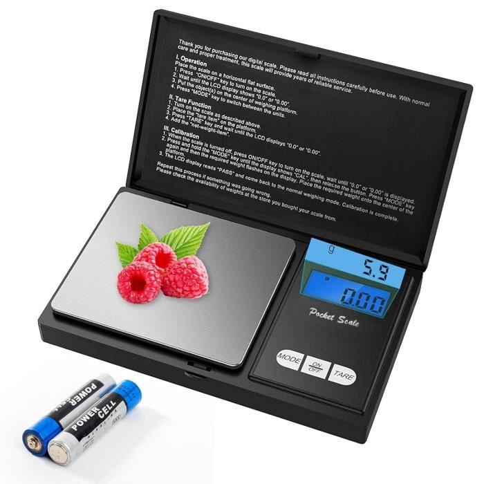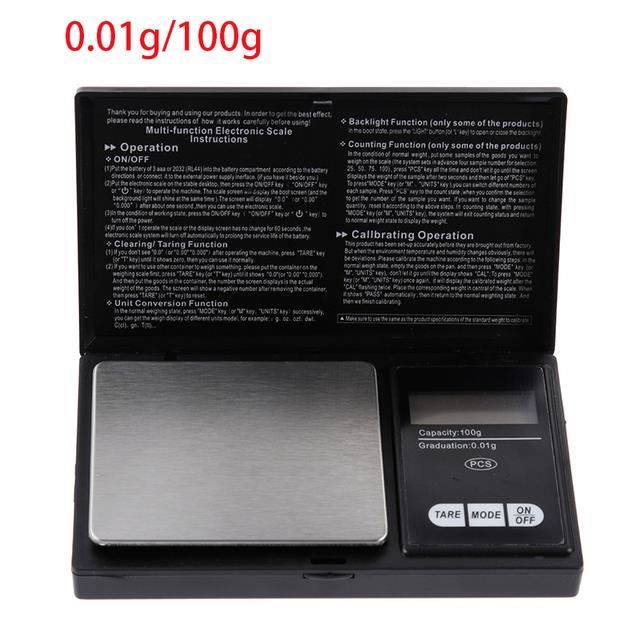 Lors de l'utilisation de l'echelle, s'il vous plait assurez-vous qu'aucune interference electromagnetique autour de 50cm, en cas obtenir des resultats inexacts. Haute précision : Cette échelle combine la dernière technologie, sur la haute précision avec fonctions de convivialité, pour garantir des résultats précis. Dimensions: 125mm x 75mm x 20mm Fonction arrêt automatique : la balance éteint lorsque cette pour 120 unden inutilisées, afin que la batterie durent plus longtemps. Mini balance numérique x 0,01 g - Précision pour bijoux - Alibaba Avec une plate-forme en acier inoxydable et un couvercle a rabat de protection, cette balance est pour etre solide et durable, Tels que des bijoux, des comprimes, des pierres precieuses, pieces de monnaie, or, argent, etc. Numérique Balance de cuisine avec bol interchangeables (1000ml) Sa grande precision permet une echelle pro de poche pour mesurer toutes sortes d'objets ou d'objets Remarque: Lorsque vous utilisez l'echelle, prenez delicatement le clapet couvercle de protection d'abord, mettre dans un environnement de windless et aucune vibration. Grande plate-forme de pesage : grande plate-forme de pesage avec une capacité de jusqu'à 5 kg graduation : 1 g. Avec une plate-forme en acier inoxydable et un couvercle a rabat de protection, cette balance est pour etre solide et durable, il peut mesurer des objets de 0.01g a 100g. Les clients sont satisfaits de la précision de la balance... vous offrant 7 mesure differente, y compris g, gn, oz, ozt, ct, tl et tpl. Balance De Cuisine Precision Brifit Balance De Précision, 50g-0.001g, Balance De Precision 0.001g Mini Balance Caractéristiques : ○ Spécifications : 10g/0.001g 20g/0.001g 50g/0.001g 100g/0.001g ○ Coque ABS haute densité ○ Écran LCD à haut contraste pour lectures... poids de 100g requis Non inclus) Vide réservoir : facile à renverser grâce bec verseur lèvres. Arret automatique Duree: environ 30s il peut mesurer des objets de 0., 01g a 100g. S'il vous plait ne pas depasser le poids nominal lors de la pesee, en cas d'endommager le capteur.