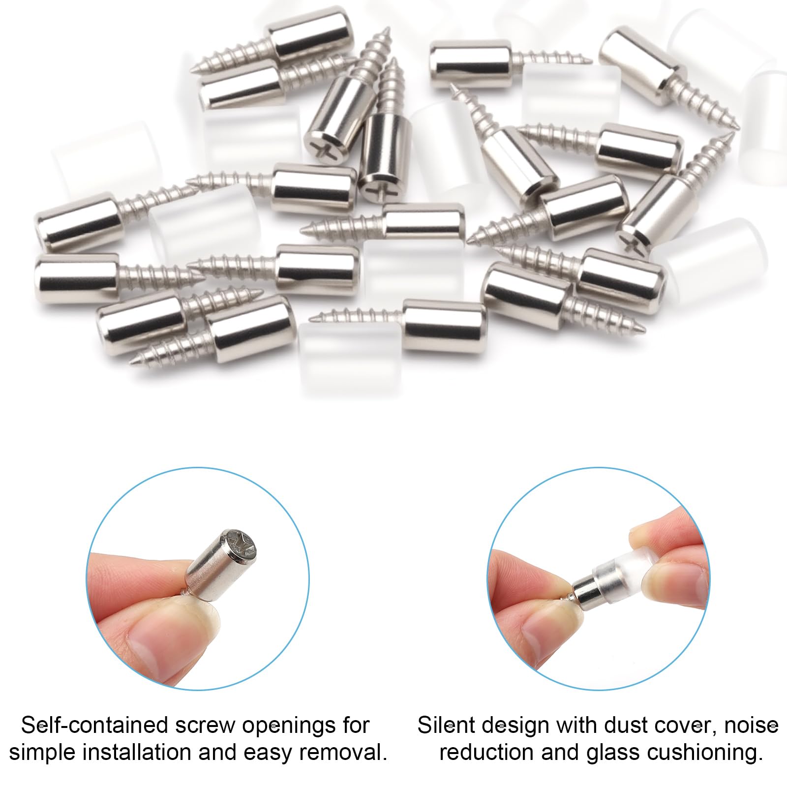 APOMOONS 20 pièces support etagere, taquets pour étagères avec protection en caoutchouc, support d'étagère support etagere placard, vis autotaraudeuse pour armoires Vestiaires Meubles -- Spécifications : Matériau:Acier inoxydable Couleur:Argenté Dimensions:26mmx7mm Emballage : 20 pièces de supports d'étagères -- Note En raison de la mesure manuelle, la taille du produit aura quelques erreurs. 【Conception de la manche antidérapante】Chaque plot d'étagère est équipé d'une manche antidérapante en silicone transparent, qui est à la fois anti-poussière et esthétique. La surface des supports d'étagères est nickelée, avec de bonnes propriétés de résistance à l'humidité, à la corrosion et à la rouille. 20 Pièces Taquet Etagere Consoles Pour étagères Supports Consoles Et Taquets Pour Étagères - Equerre Etagere Murale Metal Blanc Support Blanche Meubles... Consoles Et Taquets Pour étagères 2 Pièces Support D'étagère,Equerre Etagere Mural,Fer Forgé,Équerre Pour Étagère Flottante Etagere Placard 【Matériaux de haute qualité】Les supports d'étagères sont fabriqués en acier inoxydable haute résistance, qui est robuste et durable, peut supporter de lourdes charges et ne se déforme pas facilement. 【Polyvalentes】Les vis autotaraudeuses conviennent à une grande variété de scénarios, qu'il s'agisse d'armoires de cuisine, d'étagères de magasin, de refroidisseurs de vin ou de bureaux, d'entrepôts, de restaurants d'installations de stockage, où les vis autotaraudeuses peuvent offrir un soutien fiable. Il joue également le rôle de tampon avec le stratifié, qui non seulement augmente la friction avec l'étagère, mais réduit également le bruit et l'absorption des chocs. Chaque étagère peut être fixée à l'aide de quatre supports d'étagère pour supporter un poids de 20 kg, très résistant. 【Facile à installer】Les supports pour étagères ont une conception intégrée qui ne nécessite qu'un tournevis ou une perceuse électrique pour l'installation, sans outils ou étapes compliqués.