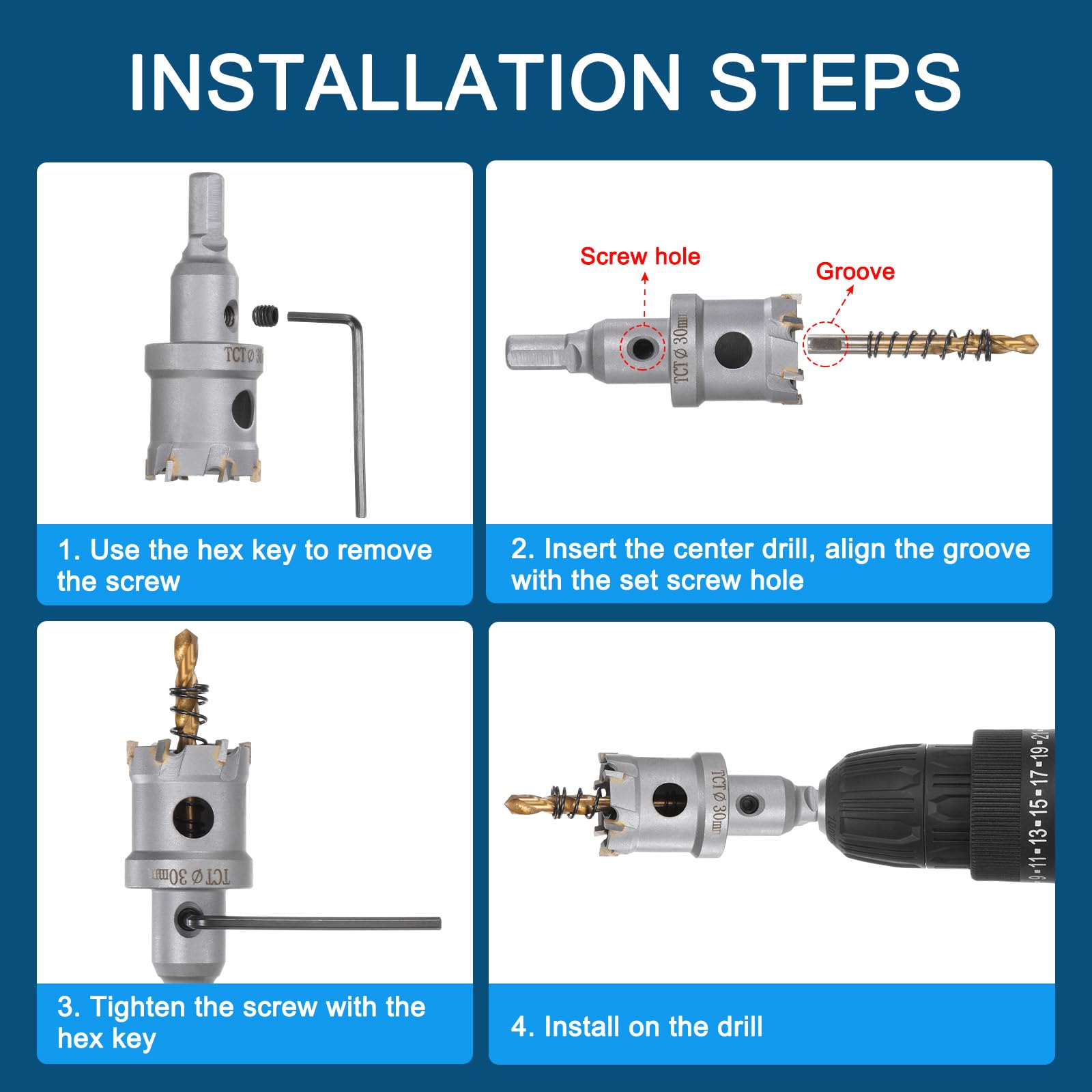 CONCEPTION A 3 LAMES : La scie cloche TCT adopte une conception à trois lames, comprenant la lame extérieure, la lame centrale et la lame intérieure, ce qui la rend plus tranchante et plus efficace, la rendant très adaptée à la coupe de métaux durs Le design spécial de bord tranchant à trois couches peut percer rapidement et efficacement, offrant une performance de coupe efficace sur une variété de matériaux. L'ensemble de scie cloche en métal peut être installé sur les perceuses manuelles, les perceuses sans fil, les perceuses à percussion et les perceuses d'établi. sourcing map Scie-cloche à métal TCT en carbure de tungstène 51 mm de Scie Cloche Trépan Tct Sourcing Map Kit De Scie-cloche En Métal TCT 6 Pièces Scies Cloches Dimensions : diamètre de perçage : 16 mm, 22 mm, 30 mm, 40 mm, 50 mm, 60 mm, chaque scie cloche est livrée avec une clé hexagonale et est emballée dans un étui en plastique. Applications polyvalentes : la scie cloche à pointe en carbure métallique peut être installée sur les perceuses manuelles, les perceuses sans fil, les perceuses à percussion, les perceuses d'établi et les machines de forage CNC, créant une excellente coupe de trou pour tous vos besoins de perçage. Positionnement précis : le foret central et le guide à ressort garantissent précision et contrôle, peuvent empêcher la pointe en carbure de se casser si vous percez directement sur une planche en acier. Remarque : veuillez ajouter du liquide de refroidissement lors du perçage continu à haute vitesse, en perçant sur de l'acier inoxydable ou une tôle d'acier d'une épaisseur supérieure à 5 mm. Ce lot comprend 6 tailles différentes de scies cloches, une clé hexagonale et un étui de rangement pour chaque scie cloche, facile à organiser et à transporter. Kit de sierra perforadora TCT de 15 piezas, juego de brocas de carburo de 58 a 3 pulgadas con... Excellent pour percer une variété de matériaux, y compris l'acier inoxydable, l'acier doux, le fer, le cuivre, l'aluminium, le FRP, le plastique et les feuilles fines en laiton.