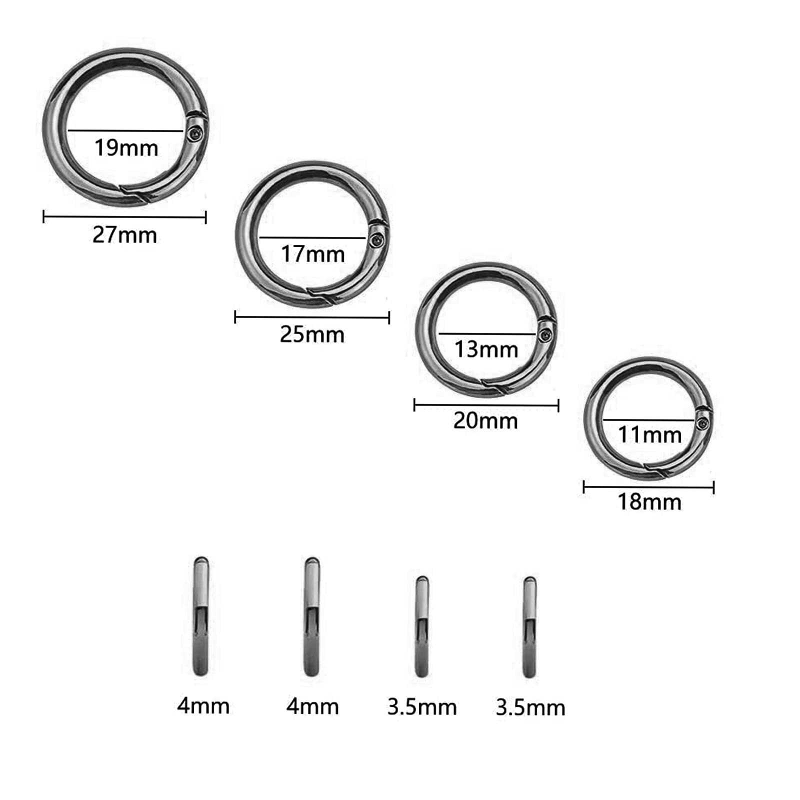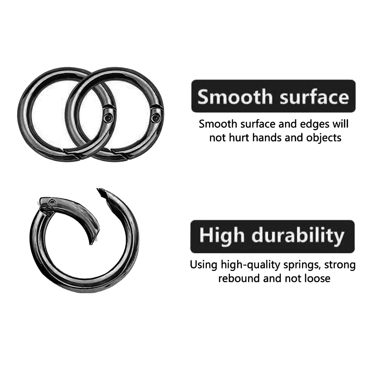 Matériau : alliage de zinc Couleur : Argent + Or Tableau des tailles : 13 mm : Diamètre intérieur : 13 mm / diamètre extérieur : 2 mm 17 mm : Diamètre intérieur : 17 mm / Diamètre extérieur : 24 mm 19 mm : Diamètre intérieur : 19 mm / Diamètre extérieur : 26 mm 25 mm : Diamètre intérieur : 25 mm / diamètre extérieur : 33 mm Liste des produits : 16 x crochets mousquetons ronds Caractéristiques : Les crochets mousquetons sont polyvalents et peuvent être utilisés comme porte-clés, bandoulière, ceinture, vêtements, travaux manuels, cordes pour animaux de compagnie, travaux manuels suspendus, randonnée, camping, etc. Quatre tailles : Les Mousqueton Rond à Ressort sont 16 pièces au total, quatre tailles, 4 pièces par taille. Le diamètre extérieur des joints toriques est d'environ 20/25/27/35 mm. Le diamètre intérieur est de 13/17/19/25 mm 【Matériaux de haute qualité】Le mousqueton rond est fabriqué en alliage de zinc de haute qualité, léger et de haute résistance, a une forte résistance à la corrosion, n'est pas facile à déformer, ne rouille pas facilement et peut être utilisé pendant longtemps. Anneau Porte Clé Mousqueton Ini Ousqueton Rond,Delaan Boucle Anneau Porte Clé En Alliage De Zinc Rond Ousqueton Snap Anneaux Sac 【Diverses utilisations】La boucle à ressort ronde peut être utilisée comme porte-clés, boucle de chaîne, boucle de sécurité et peut être utilisée pour les sacs à dos, les ceintures, les sacs, les bijoux, les colliers de chien, etc. ousqueton Rond Doré Boucle À Ressort Ronde en Alliage De Zinc ousqueton Rond ousqueton Snap... 30 Pièces 25mm Mousqueton Rond Snap Ressort Anneau Boucle La méthode d'utilisation est simple et pratique, il vous suffit d'appuyer légèrement sur le couple de boucle et de boucler le joint torique à ressort aux éléments que vous devez boucler pour terminer l'utilisation. Il est durable et peut être réutilisé pendant longtemps.
