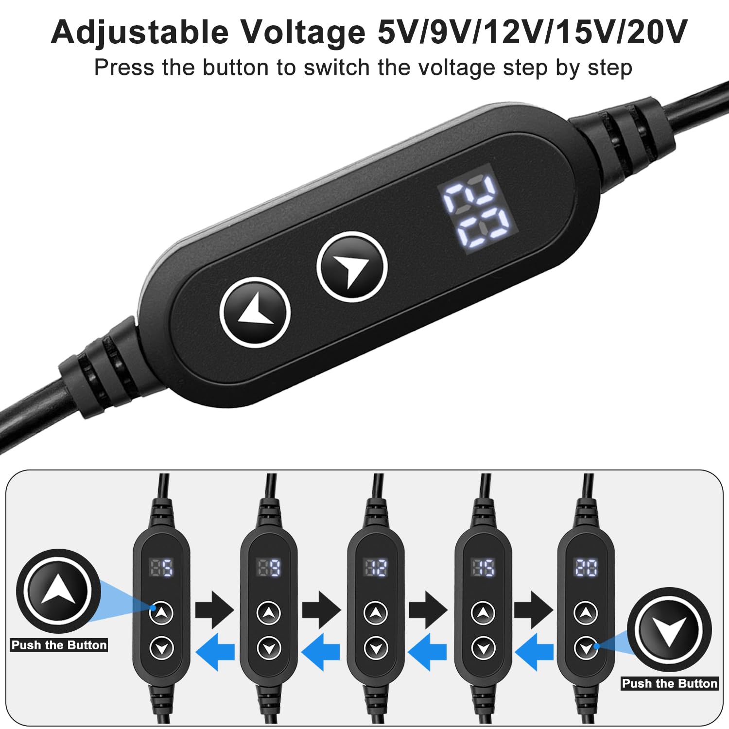 Remarque : Avant d’acheter, veuillez vérifier si votre appareil est compatible avec notre cordon d’alimentation, vous devez vous assurer que votre chargeur USB-prend en charge une sortie 5V, 9V, 12V, 15V, 20V et l’ampérage requis. 1 36W Câble d'alientation Chargeur de Voiture Prise Allue-Cigare... Les chargeurs USB doivent prendre en charge les sorties 5 V, 9 V, 12 V, 15 V et 20 V pour être utilisés. Fonctionnalités: L’entrée d’alimentation TYPE-C doit prendre en charge le protocole de charge rapide pour avoir une sortie réglable de 5V 9V 12V 15V 20V. Adaptateur Alimentation Usb Dc Câble Alimentation Adaptateur PD/USB Vers CC 5.5x2.1mm Chargeur Jbl Hoembpn Power Supply Cable Adapter PD/USB to DC 5V, 9V, 12V, 15V, 20V L’entrée de l’alimentation de type C doit prendre en charge le protocole de charge rapide avant de pouvoir produire une valeur de tension « réglable ». Livré chez vous au meilleur prix : Hoembpn Cable Alimentation Adaptateur PD/USB vers DC 5V,9V,12V,15V,20V Tension Réglable Type C Mâle to 5.5x2.1mm Cordon Charg Emballage: 1 * câble d’alimentation adaptateur USB C vers DC 10 * adaptateurs DC de différentes tailles 1 * connecteur USB (spécification : TYPE-C vers USB) Largement utilisé dans les alimentations, les ordinateurs portables, les adaptateurs de charge rapide de protocole, la charge d’alimentation mobile, etc. Convertisseur de charge PD DC 230W entrée femelle vers 3broches mâle 90... Spécifications: Protocole de charge rapide : charge rapide Interface d’entrée : TYPE-C mâle Interface de sortie : noir droit 5521 Spécifications du bouton : « Augmenter » « Diminution » Tension de sortie : 5V 9V 12V 15V 20V réglable Courant de sortie : 3A max Puissance de sortie maximale : 60 W (20 V3A) LONGUEUR DU CÂBLE : 1,2 M Matériau du produit : Plastique PC d’ingénierie Couleur du produit : noir Poids : 0,11 kg Taille de l’emballage : 180 mm * 120 mm * 25 mm Veuillez noter : 1., Le câble d’alimentation USB-C vers DC doit être utilisé avec un chargeur ou un adaptateur de banque d’alimentation prenant en charge le protocole, sinon il ne peut produire que 5V., 2., Avant d’acheter, veuillez vérifier si votre chargeur ou votre banque d’alimentation prend en charge l’alimentation de charge requise., 3., Habituellement, la spécification de sortie se trouve à l’arrière ou au bas du chargeur. Spécification de l’en-tête USB : TYPE-C vers USB. Câble D’alimentation Adaptateur USB C vers DC : Protocole de charge rapide, prend en charge le courant de sortie maximal de 3A, puissance maximale de 60W (20V3A). (La puissance de l’entrée de l’alimentation TYPE-C doit atteindre 45W pour avoir une tension de sortie de 15V et 20V., ) ) Charge rapide, simple et pratique à installer et à utiliser, plug and play.