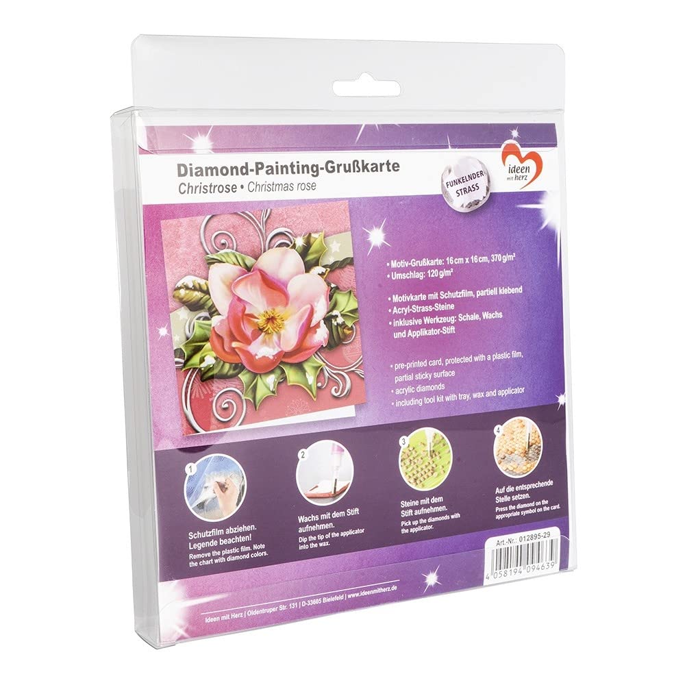 Placez les pierres dans le récipient, ramassez avec le stylo et placez-les à l'endroit correspondant du motif. Fixez ensuite selon vos envies avec le scellant Diamond Painting Premium. Diamond Painting bringt Glitzer in den Alltag! La carte imprimée de qualité supérieure est autocollante dans le domaine du motif à poser et peut être utilisée directement avec les strass à facettes complexes. Cela crée des cartes de vœux merveilleusement scintillantes qui attireront tous les regards. Pour un résultat parfait, nous proposons également les accessoires appropriés. Que ce soit pour des cartes de vœux, des pendentifs, des images de fenêtre, des images sur toile ou Bei uns finden Sie eine Vielzahl an unterschiedlichen Diamond Painting Produkten mit verschiedenen Motiven zu diversen Anlässen. Ce kit contient tout ce dont vous avez besoin pour commencer directement la peinture au diamant. Description du produit Découvrez le monde fascinant de la peinture au diamant Laissez-vous envoûter par la magie de la peinture au diamant Avec les diamants étincelants, vous créez de magnifiques designs. 16 cm x 16 cm, 370 g/m² Ideen Mit Herz, Carte De Voeux Diamond Painting, édition Pour la conception libre Règle de peinture diamant Créez de belles formes et motifs Deen Mt Herz Carte De Vœux, 16 X 16 Cm, 370 G/m², Avec Enveloppe Et Chaque chiffre imprimé est associé à une nuance de couleur. Que ce soit pour des cartes de vœux, des pendentifs, des images de fenêtre, des images sur toile... Fixez et connectez Peinture diamant de qualité supérieure Couche de protection transparente pour un maintien sûr des pierres et une surface brillante Inclus : strass, enveloppe et outil Idéal pour les pierres résiduelles Colle Diamond Fix Pour coller des strass sur des surfaces lisses Accessoires indispensables Rouleau de peinture diamant Idéal pour appuyer sur les strass posés Chaque chiffre imprimé est associé à une nuance de couleur.