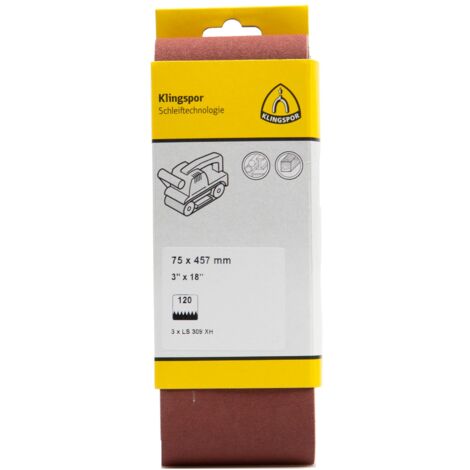 Avantages : Type spécial pour ponceuse à bande manuelle - Utilisation universelle sur bois, métal, peinture et vernis - Grand programme de stockage sur bandes pour toutes les machines courantes Grain abrasif : corindon | Support : coton X | Liant : résine | Dispersion : dense | Largeur : 65 mm | Longueur : 410 mm | Fermeture : F5 collé superposé D'une taille de 65x410mm et d'un grain de 80 F5, ils sont idéaux pour travailler le métal, le bois, la peinture et le vernis. Les bandes sont fabriquées dans un... Klingspor LS 309 XH 4120 Set De Bandes Abrasives Grain 80 (L X L) 410 Mm X 65 Mm 10 Pc(s) - Electronic France 10 Bandes Abrasives Toile Corindon LS 309 XH Larg. 65 X L 410 Mm Gr 80 4120 2406908 Pour le traitement des matériaux : bois, métal universel, métaux non ferreux