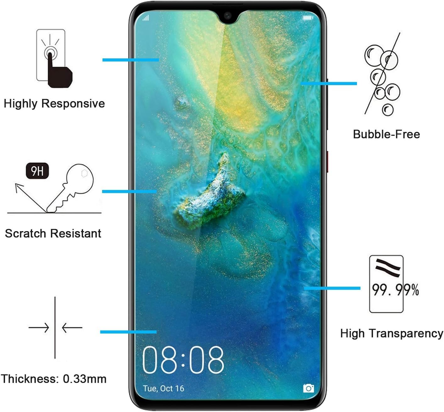 Très grande dureté: résiste aux égratignures jusqu'à à 9H . Cependant dû aux bords arrondis de l'appareil, une infiltration d'air peut se produire. Oléophobe: il a un revêtement oléophobique qui empêche les empreintes digitales et d'autres contaminants et rend le film facile à nettoyer. Protection appareil photo Huawei Mate 20 X en verre trempé – Pack de 2 2 Pack Verre Trempé Huawei Mate 20x. Très grande dureté: résiste aux égratignures jusqu'à à 9H (plus dur que d'un couteau) . Haute-réponse et une grande... Huawei Mate Xt NEW'C Lot De 2, Verre Trempé Pour Huawei Mate 20x, Film Huawei Mat 20 Haute-réponse et une grande transparence. Sans poussière sans traces de doigts un bouton-poussoir trop facile l'installation sans bulle. Une pipette fournit permettant de renforcer l'adhésion du verre et bloquer l'infiltration d'air. Pour Huawei Mate 20x, le verre a été conçus un peu plus grand afin de protéger un maximum l'écran. Ne jamais utiliser sur un appareil déjà abimé ou fissuré.