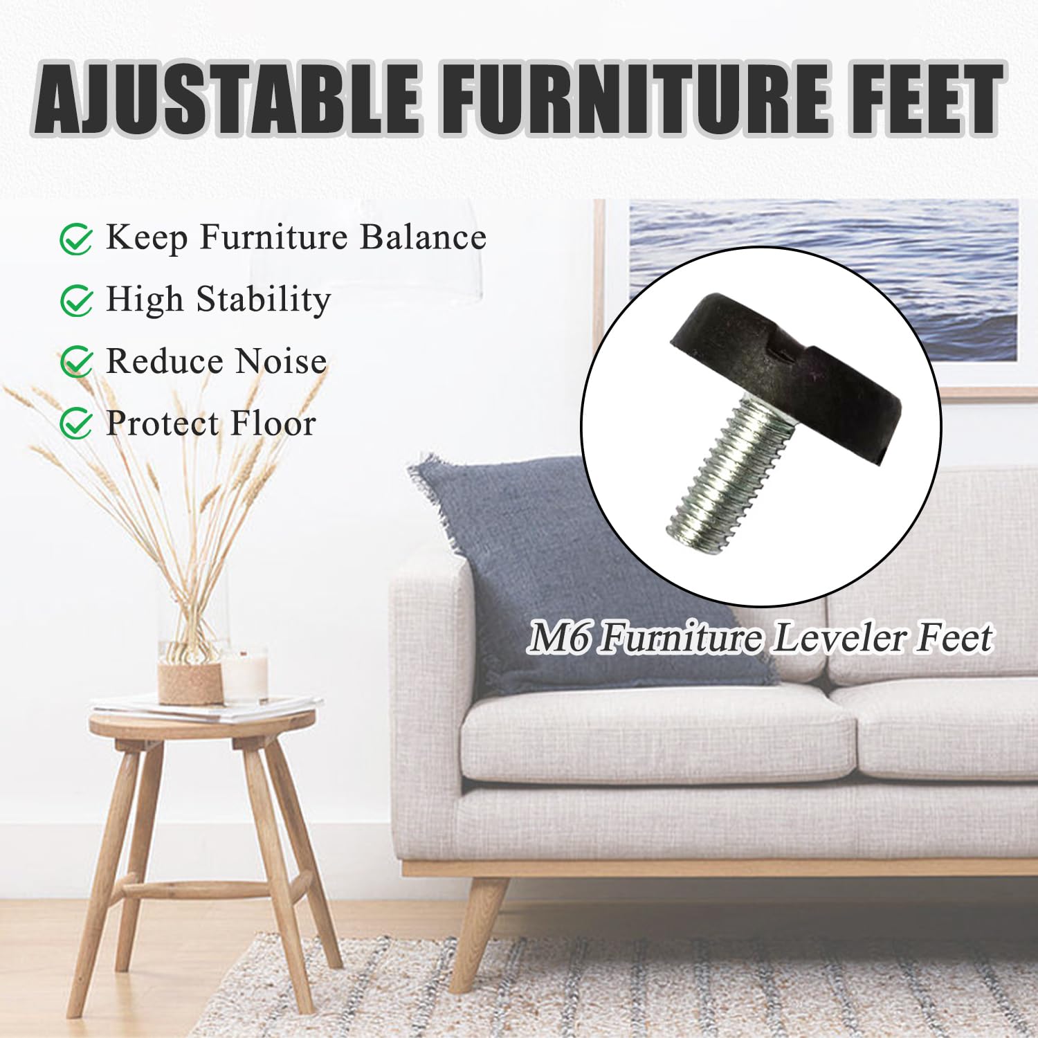 Matériau : polyéthylène, acier inoxydable., Couleur : noir. Utilisez ce produit sur des surfaces stables et non glissantes pour éviter tout risque d'instabilité. Réglez rapidement et facilement les pieds de nivellement à une hauteur équilibrée. Pièces Pied Reglable Pour Meuble, Pied Meuble De 33 à 40 Mm Pieds De Meuble Avec Pieds De Nivellement Resistants Aux Rayures Pour Armoires Pieds De Lit Tables Canapes 88015483 Description du produit Taille : M6 x 20 mm. M6 (20 x 18 x 5 mm). Matériau durable : les pieds de nivellement sont fabriqués en acier inoxydable et en polyéthylène, résistants à la corrosion et à la rouille, durables pour une utilisation à long terme. Gardez vos meubles et votre sol contre les rayures et les dommages, et réduisez le bruit lors du déplacement des meubles. Contenu de l'emballage : vous recevrez 40 pieds de chaise à vis. Le numéro... Maintenir l'équilibre : si le sol est rugueux ou si le produit a de mauvaises jambes, vous pouvez l'installer sur le bas du produit pour maintenir l'équilibre et réduire le bruit pendant le mouvement. Nos pieds de chaise à visser conviennent à la plupart des meubles. Contenu de l'emballage : vous recevrez 40 pieds de chaise à vis. Facile à installer : les pieds de meubles peuvent être ajustés en hauteur simplement en les vissant dans les niveleurs. Pied reglable en hauteur : la sélection produits Leroy Merlin de ce vendredi au meilleur prix ! Retrouvez ci-après nos 3406 offres, marques, références et promotions en stock prêtes à être livrées rapidement dans nos magasins les plus proches de chez vous Plaque Fixation 40 Pcs Pieds De Nivellement Réglage Hauteur Des Meubles Pieds Reglable Pour Meuble Gardez vos meubles et votre sol contre les rayures et les dommages, et réduisez le bruit lors du déplacement des meubles.
