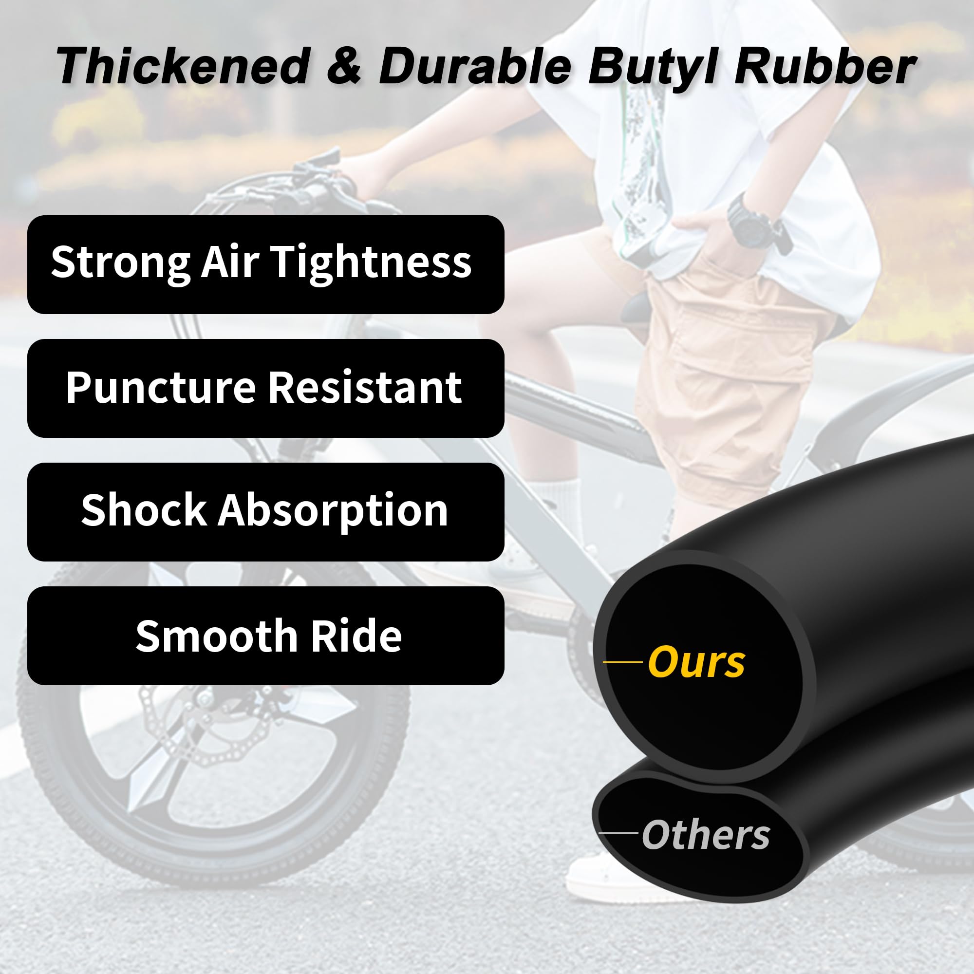 Chambre à air robuste en butyle épais de 40,6 x 5,3 cm, chambre à air de pneu de scooter de 40,6 cm avec tige de valve coudée RUTU Chambre à air arrière 40,6 x 1,75/2,125 et avant 31,8 x 2. Double épaisseur, plus durable. Et les valves sont meilleures et peuvent supporter plus de pression. 3. Plus épais que l'original, peut être mieux protégé. 4. Avant l'installation, enveloppez l'extrémité pointue du pied de biche avec un chiffon en fibre afin qu'il n'endommage pas l'intérieur du pneu et le revêtement du moyeu. 5 Chambre à Air Pour Pneus Chambre à Air En Caoutchouc Butyle 35 Mm 40,6 Cm 45,7 Cm 50,8 Cm Valve Chambre à Air Vtt Michelin S'adapte à différents modèles de poussettes – Ces chambres à air de 40,6 x 4,3 cm x 4,3 cm sont compatibles avec les modèles de poussettes à 3 roues BOB Gear (poussettes simples et doubles), y compris BOB Gear Revolution SE, BOB Gear Revolution Flex, BOB Gear Alterrain Pro, BOB Gear Alterrain Pro, BOB Gear Ironman et Str. Poussette Strides Fitness Pneus de poussette, Chambres à air...