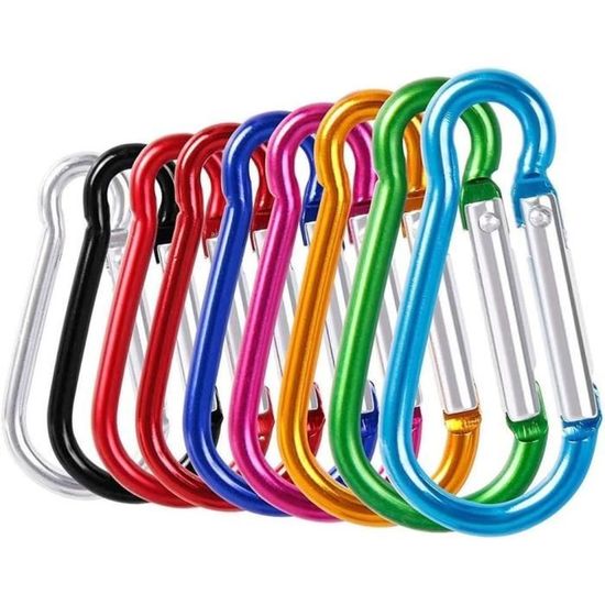 Ces mousquetons de la taille de la paume sont faciles à transporter partout où vous allez Grand mousqueton en acier inoxydable, mousqueton à ressort robuste, crochets d'e Avertissement : Il n'est pas recommandé de l'utiliser pour l'alpinisme, l'escalade, l'escalade sur glace et les jeux en haute altitude pour votre sécurité. Moschettone Piccolo Lot De 10 Mousquetons Verrouillables - Alliage Aluminium - Pour Camping, Randonnée, Sac à Dos Porte-clés Mousquetons Utilisez-les comme un crochet pour la laisse de votre chien ou chat, il n'y aura pas d'incidents d'éruption ; Utilisez-les pour attacher des accessoires pour votre sac à dos et votre sac d'appareil photo. Description du produit : Compact, léger et ultra durable, matériau en aluminium de haute qualité. Utilisation pour attacher une bouteille d'eau, du matériel de camping et d'autres choses à votre sac à dos lors du camping ; Peut être utilisé comme porte-clés pour garder vos clés ou petits objets sans risque de tomber. Un petit gadget utile. La forme en D est plus confortable à tenir à la main. Mousqueton durable et lisse : sans pièces tranchantes, il est sûr et confortable à utiliser à tout moment. Contenu de l'emballage : notre lot comprend 10 mousquetons en D, chacun ne pesant que 24 grammes avec des dimensions 80 (L) x 42 (l) mm. Pour des raisons de sécurité, il n'est pas recommandé pour les sports tels que l'escalade, l'escalade sur glace et les jeux aériens Alliage d'aluminium poli de type D, imperméable, résistant à l'usure, haute résistance et durable. [Utilisations multiples] : idéal pour les activités de plein air, y compris le camping, la pêche, la randonnée, les voyages. Légers et solides : fabriqués en alliage d'aluminium de haute qualité, ces mousquetons offrent un excellent rapport résistance/poids. Ils sont légers, ce qui les rend faciles à transporter sur votre porte-clés ou votre sac à dos sans ajouter de volume inutile, mais suffisamment solides pour maintenir votre équipement essentiel en toute sécurité Matériau de qualité supérieure : fabriqué en alliage d'aluminium durable de qualité supérieure, notre clip de boucle de verrouillage est élégant, solide et pratique. La rouille ne sera pas un souci avec nos mousquetons Charge maximale stabilisée de 60 kg Il est parfait pour un usage quotidien, à attacher à un sac à dos, un sac à main ou comme un porte-clés.