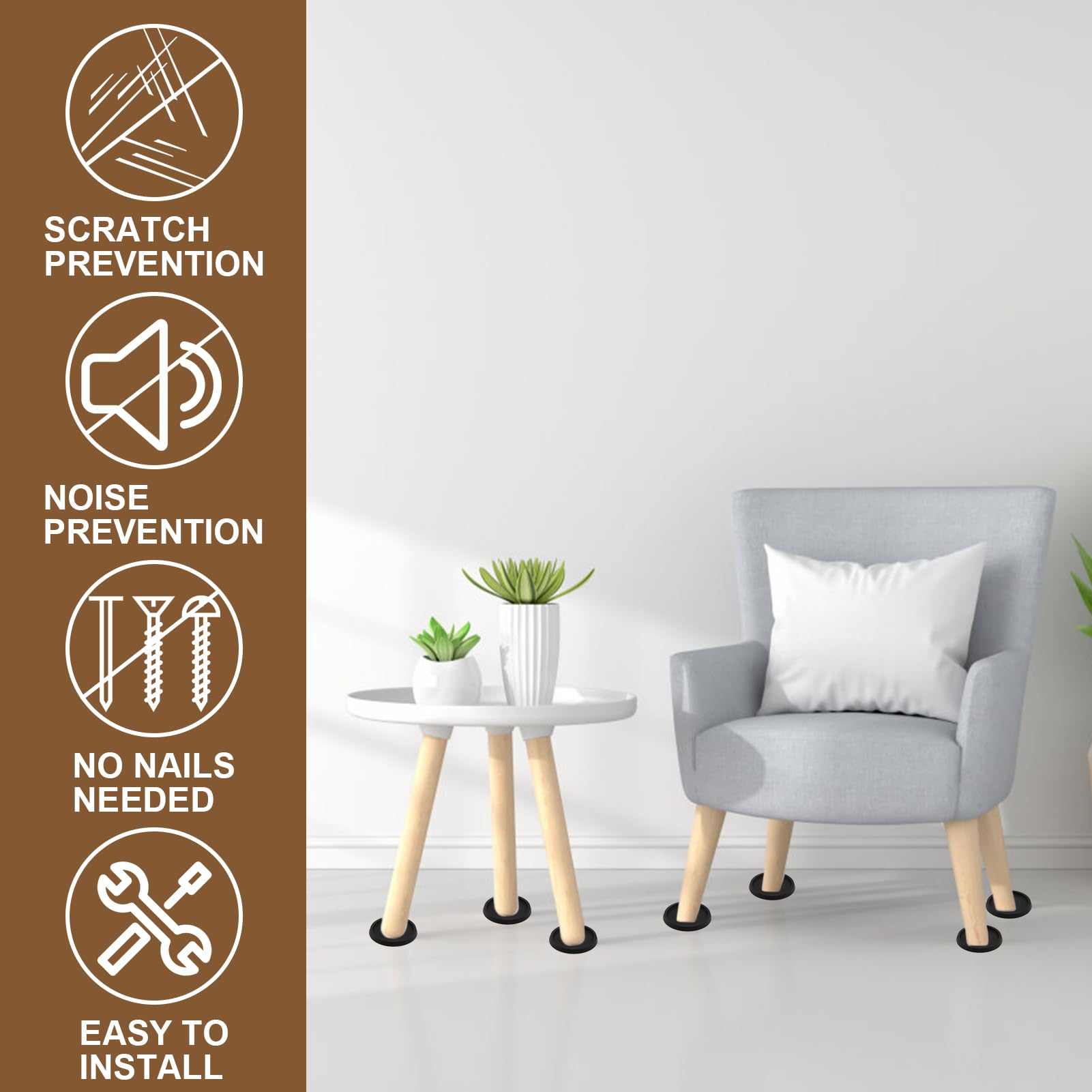 Matériau de haute qualité : fabriqués à partir de caoutchouc souple dur respectueux de l'environnement, ces tapis sont résistants à l'usure, antidérapants, sans aucune odeur, ils seront plus sûrs à utiliser, le caoutchouc dur et souple rendra l'effet antidérapant évident, la capacité de charge maximale de 120 kg, vous n'avez pas à vous soucier du phénomène d'écrasement, le design épais sera plus stable L'installation est facile : il suffit de placer le dessous de verre sous le pied de votre meuble, et il est prêt à fonctionner Convient à tous les meubles : Les roulettes en caoutchouc conviennent aux lits, canapés, chaises, fauteuils inclinables, bureaux, tables, commodes, pianos, canapés et cadres de lit à roulettes Utilisation durable et polyvalente : fabriqués en caoutchouc doux, élastique et durable, ces patins de meubles évitent les marques de sol et les rayures. Dimensions du produit : 1,5 x 5 cm. Il vous aidera également à réduire la génération de bruit Description du produit Veuillez prêter attention à la taille de votre utilisation avant d'acheter pour éviter les erreurs., 2., Par rapport aux tapis de sol adhésifs traditionnels, il sera plus durable, confortable et doux, et ne laissera pas de traces adhésives., 3., Il peut correspondre à différents styles de décoration et s'adapter bien à votre maison. Le design antidérapant empêche les meubles de glisser, ce qui les rend adaptés à différents types de meubles, y compris les pieds de lit, les chaises, les canapés, et plus encore. Augmente la performance de stabilisation de l'article, protège les meubles et votre sécurité en même temps Robuste et de bonne qualité : tous les patins ronds en caoutchouc sont fabriqués en caoutchouc synthétique de haute qualité, ce qui peut protéger vos meubles sans endommager votre sol. Ces dessous de verre de meubles ont une excellente résistance et durabilité, et peuvent résister à des pressions élevées et à des charges élevées... Le design pratique et attentionné en fait un cadeau idéal pour une pendaison de crémaillère PATIKIL Lot De 4 Patins De Meubles En Caoutchouc De 5,8 Cm, Dessous De Verre Ronds Antidérapants Pour Meubles, Pieds De Meubles, Protecteurs De Sol Méthode d'emballage : sac. Caractéristiques : Nom : patins en caoutchouc pour meubles., Couleur : noir., Matériau : caoutchouc. Installation facile et compatibilité : le colis comprend 4 roulettes rondes en caoutchouc (5 cm de diamètre) qui peuvent s'adapter à la plupart des tailles de pieds de meubles. Dimensions du colis : 2 x 14 x 17 cm. Patins Antidérapants Pour Meubles, 4 Pcs Pieds En Caoutchouc Ronds Protecteurs De Sol Sous Verres Pour Chaise Table Lit Canap