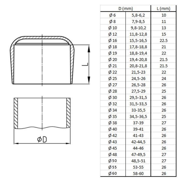 Permettre un déplacement sans effort: Utilisé comme patin pour meubles, l’embout de tube de GleitGut rend vos meubles plus mobiles. Les tables et les chaises peuvent être déplacées en un clin d'œil et sans grand effort, et l'espace est créé. Domaines d'utilisation: Embout de chaise, patins pour meubles, embout pour tube, pièces de rechange pour fers à repasser, bouchons d'extrémité. Embout à insérer pour tube rond - diamètre 16 à 60 mm | WURTH Protéger le matériau et les nerfs: Que ce soit comme fermeture pour les pieds de chaises ou pour d'autres tubes (en acier inoxydable) - le bouchon tube de GleitGut ferme les arêtes vives et impures, protège le matériau ainsi que les surfaces et les objets qui entrent en contact avec lui. Montage simple: L’embout pour tube peut être simplement enfoncé dans le tube à l'aide d'un maillet en caoutchouc., C'est fait! Ils sont adaptés pour un tube rond 18 mm de diamètre. Vendus à l'unité. > Tubes ronds 18 mm > Dimensions 18 x 19 mm > Dimension centrale 16... Idéal pour les chaises de jardin: ces bouchons de tube peuvent être utilisés à l'intérieur et à l'extérieur grâce à leur résistance aux intempéries et au temps. Embout pour tube rond d'un diamètre INTÉRIEUR de 13,7 mm à 15,3 mm. Le bouchon plastique pour tube peut donc être utilisé aussi bien à l'intérieur qu'à l'extérieur (par exemple, pour les chaises de jardin et de patio), car il est résistant aux intempéries et au temps. Utilisable comme bouchon chaise pour des pieds de chaise droits sans angle d'inclinaison. Bouchons pour tubes carrés ou ronds en technopolymère avec inserts filetés en acier. Embouts et connecteurs pour tubes. Achetez en ligne Embout Tube Rond 18mm EMFA Bouchon Pour Tube Rond 114 Mm 8 Pièces Blanc Capuchon Embout Pour Tube Fabrication de haute qualité: Le bouchon pour tube rond de GoodGlides est fabriqué exclusivement en Allemagne.