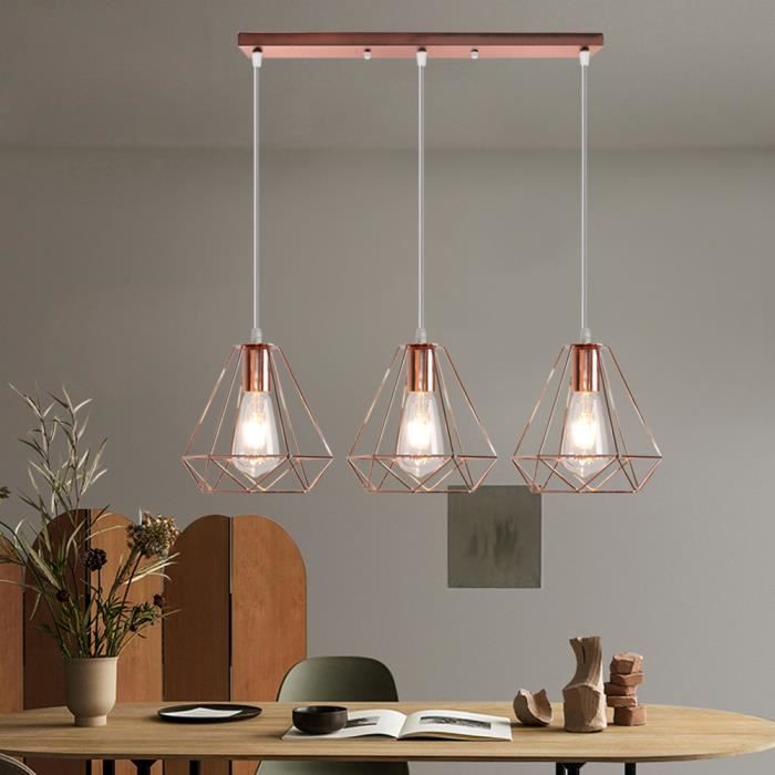 Suspension 50cm: Taille de l'abat-jour: Hauteur 16cm x Diamètre 22cm; Longueur du support en barre: 50 x 5 x 2 cm; Longueur du câble: 100cm max (réglable).