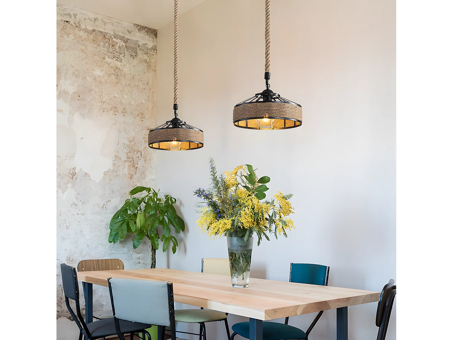 Description du produit : ➤Style : industriel rétro ➤ Type de lustre : lustre en corde de chanvre ➤Taille du produit : longueur : 40 cm, hauteur : 21 cm (chaîne en métal réglable : 100 cm) ➤Tension : 110 V ~ 240 V (incluse dans la livraison). ➤Costume pour différents styles : moderne, rétro, loft, antique. Suspension Luminaire En Corde De Chanvre Lustre Rétro À 3 Lumières Plafonnier Diamant Noire Pour Bureau, Couloir, Restaurant, Loft, Bar, Café, 25CM Lustre Boheme Lustre Suspension Vintage Corde Chanvre - Style Industriel - E27 - 40cm - 100cm Réglable Lustre En Bois Flotté Matériau : matériau principal en corde de chanvre tissée à la main et fer de haute qualité, excellente finition et montage facile Lampe: E27, convient pour: lampes LED, lampes halogènes écologiques, lampes à économie d'énergie, lampes conventionnelles. Différentes sources de lumière ont... ➤Matériau principal de l'ombre : fer ➤Type de source lumineuse : ampoule à incandescence ampoule à économie d'énergie LED ➤Nombre de sources lumineuses : 1., ➤Culot : E27 (non incluses) Convient pour les ampoules E27, puissance = 40 W. ➤Tension : 110-240 V, puissance = 40 W Économie d'énergie : luminosité suffisante, faible consommation d'énergie et plus de 85 % d'économie d'énergie. ★Environnement - Que ce soit comme lampe de salon, lampe de table ou au comptoir, les lampes suspendues rondes créent une atmosphère agréable.