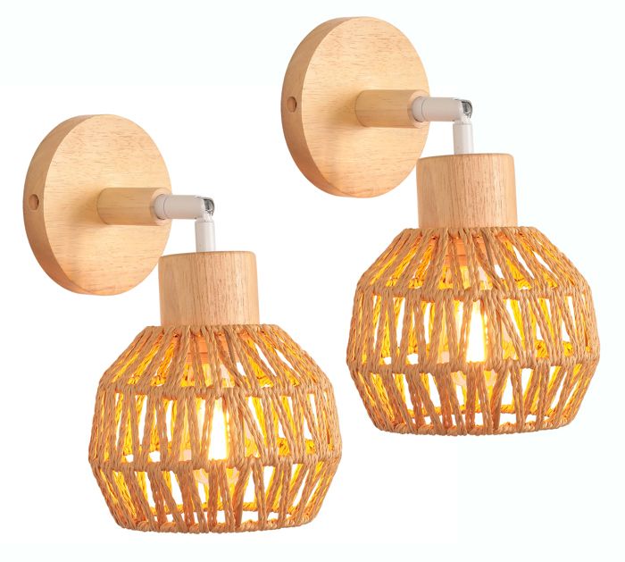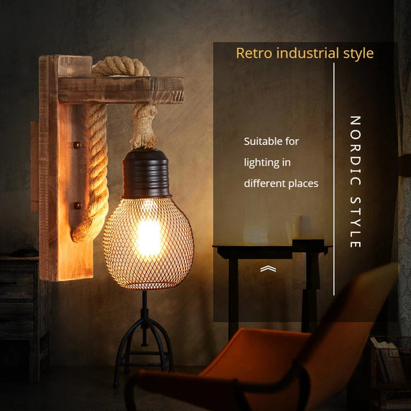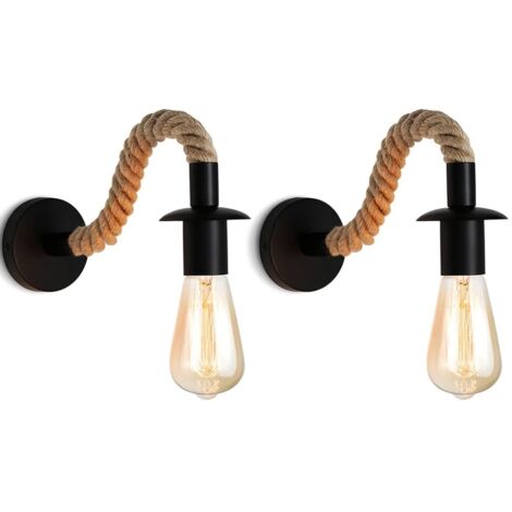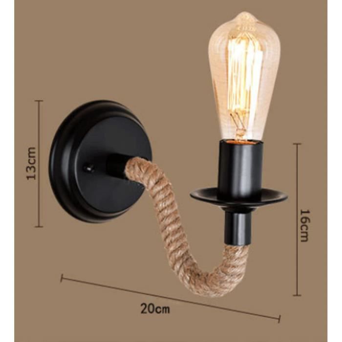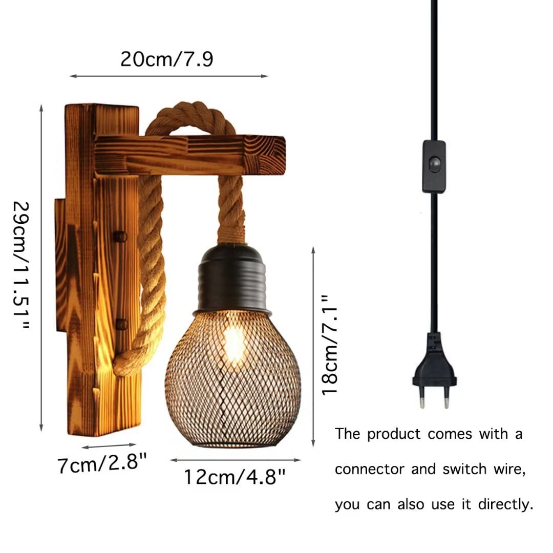 ▶ [DEUX MODES D'UTILISATION] : le produit est livré avec un connecteur et une ligne de commutation, de sorte qu'il peut non seulement être connecté à la ligne domestique pour une utilisation directe, mais peut également être directement connecté à la prise pour une utilisation, ce qui est très pratique. Nous vous recommandons d'utiliser une ampoule Edison qui a le meilleur effet. IDEGU Lot de 3 Retro Applique Murale en Corde de Chanvre et Bois Applique Vintage Luminaire Applique Murale Vintage En Corde De Chanvre Applique Murale Industrielle Idéal Pour Un Applique Bois ▶ [SOURCE LUMINEUSE] : base de source lumineuse standard internationale, E27 pour l'Europe, E26 pour l'Amérique, à l'exclusion de l'ampoule. Applique murale industrielle vintage, abat-jour en cage en métal noir... Veuillez prendre des mesures de sécurité avec du ruban isolant après la connexion. Corde de chanvre tissée à la main, solide, pleine d'atmosphère pittoresque. ▶ [MATÉRIAU DE HAUTE QUALITÉ]: La base en bois épaisse est composée d'une variété de processus, préserve la texture du bois d'origine. GUANSHAN Applique Murale Vintage Corde De Chanvre Abat-Jour En Maille De Fer Luminaire Rétro Éclairage Mural Décoratif pour Loft Restaurant Couloir