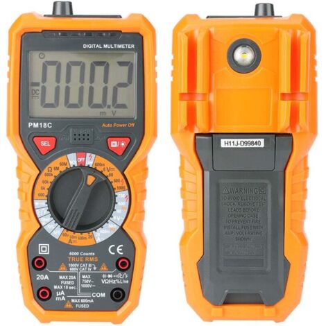 Ahlsen 1 pièces pince de courant numérique AC/DC multimètre Détection de fil sous tension (détection de fils sous tension) Le multimètre LT17A mesure l'intensité, la résistance, la tension, la capacité, la fréquence, la continuité et la température. Les fils conducteurs de test... La classification de sécurité CAT III des multimètres indique dans quels environnements le multimètre peut être utilisé en toute sécurité et contre quels pics de tension il est protégé: L’écran affiche clairement les valeurs mesurées avec de grands chiffres, ce qui les rend faciles à lire et réduit les risques d’erreurs. Exemples : Tableaux de distribution principaux dans les bâtiments, machines industrielles Multimètre Numérique 2000 Comptages AC DC Courant Tension Résistance Multimetre Automatique Indicateur de faible capacité de la batterie Rétroéclairage Test de diode Il est indispensable pour les professionnels de l’électronique et de l’électricité dans leurs mesures quotidiennes. Fonctions principales: Test de continuité avec buzzer Fonction de maintien Fonction Max