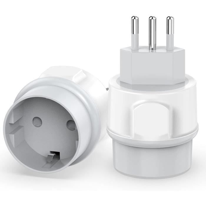 Construit pour durer : contrairement à d'autres adaptateurs disponibles sur le marché, nos adaptateurs sont fabriqués avec des matériaux durables de haute qualité qui ne surchauffent pas, offrent une bonne isolation et sont ignifuges – ils sont conçus pour durer Description : Cet adaptateur 3 broches permet à l'utilisateur de convertir une prise de tout autre pays en une prise/prise d'Italie. Il est très pratique et... TESSAN Adaptateur Prise Italienne, 6 en 1 Adaptateur de Voyage Vous pouvez utiliser ces adaptateurs avec des appareils électriques haute puissance tels que les ordinateurs, les pinces à friser, les sèche-cheveux, les ordinateurs portables, les téléphones, etc., sans soucis. Adaptateur Prise Italienne Vers France Adaptateur Prise Anglaise Adaptateur Prise De Voyage Italie LENCENT [2 Colis],2500W,10A,pour France/Europe Vers Italie,Chili Adaptateur Prise France Vers Italie Prise Italienne Adaptateur France Points forts : Type d'alimentation : Batterie; Objet connecté : Oui. Voir le descriptif technique ️ Adaptateur Royaume-Uni vers Italie – Cet adaptateur vous permettra de connecter des appareils du Royaume-Uni en Italie ou n'importe où avec une prise de type L, idéal lorsque vous voyagez en Italie, au Chili, au Vatican et partout ailleurs avec une prise italienne à 3 broches. Normes de sécurité britanniques : nos adaptateurs de voyage primés sont l'un des rares à avoir passé la très stricte norme britannique 8546., Ces adaptateurs MyTravelPal disposent d'une protection contre les surtensions et d'une connexion terre/terre ; caractéristiques de sécurité essentielles pour de nombreux appareils électriques.