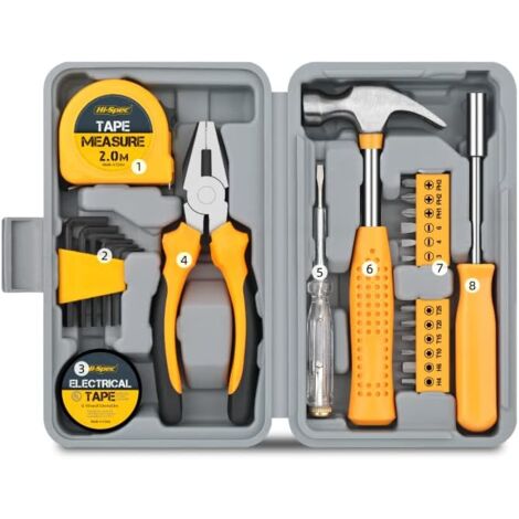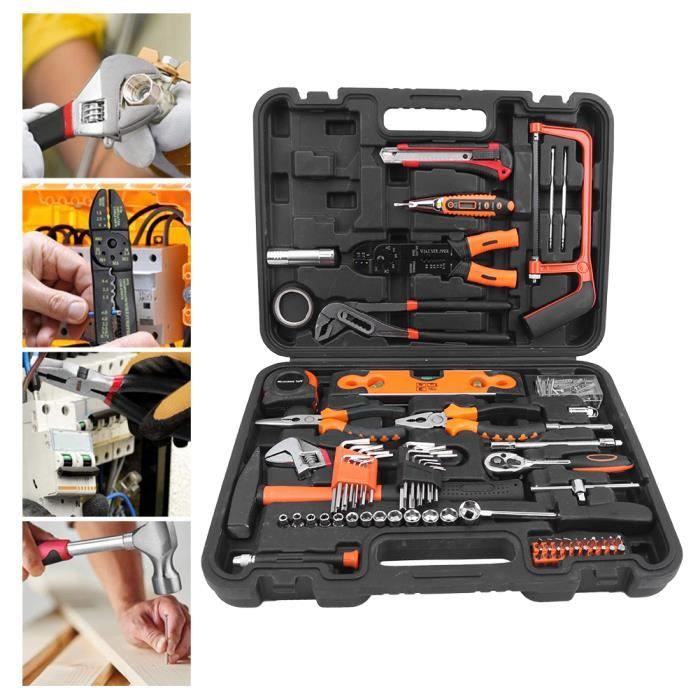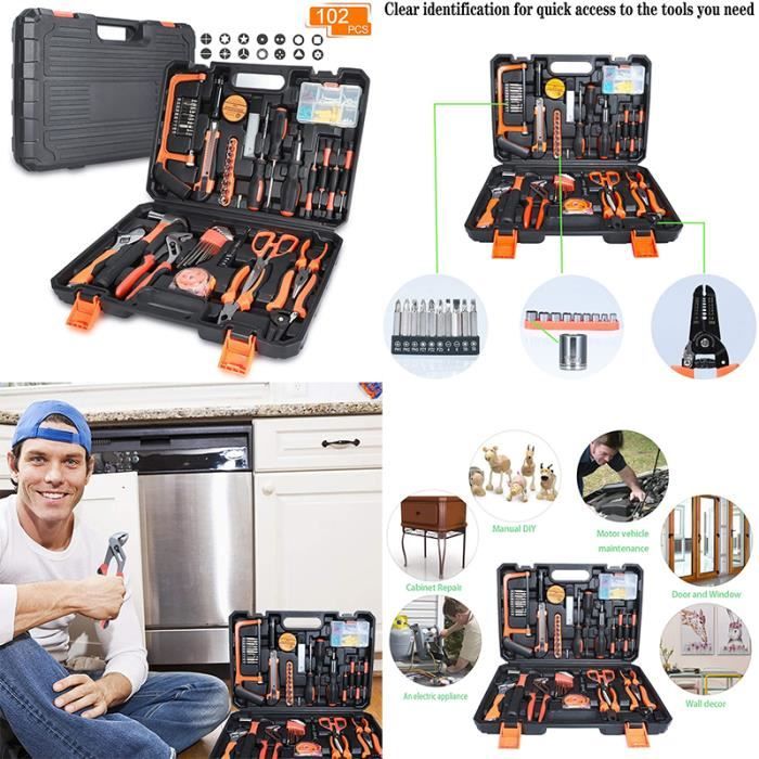 Que vous fassiez des réparations dans la maison, effectuez un entretien général ou que vous vous lanciez dans de nouveaux projets, cette trousse à outils polyvalente est là pour vous. HOTO Boîte à Outils, Ensemble d'Outils Essentiels pour la Maison... Outils mis sur table en bois. Convient pour une variété de tâches, des réparations de base aux projets plus complexes, ce qui en fait un ajout essentiel à toute boîte à outils. Ensemble complet : le lot comprend une pince à bec long de 15,2 cm, une pince à joint coulissant de 15,2 cm, une clé réglable de 15,2 cm, un marteau tubulaire en acier de 340,2 g, un niveau torpille magnétique à 3 fioles de 22,9 cm, un mètre ruban de 3,7 m x 1,5 cm, trois tournevis de précision, un tournevis magnétique, 19 embouts d'insertion (dans le support., s), 1/10., Adaptateur de 0,2 cm, kit de fixation, lunettes de sécurité, une paire de gants de travail et un sac à outils en toile à fermeture éclair à 18 poches. Les poignées ergonomiques minimisent la fatigue de la main, tandis que le sac de transport pratique à 18 poches garde tout organisé et facilement accessible. Avec des fonctionnalités supplémentaires telles qu'un pilote d'embout magnétique, un niveau torpille et un mètre ruban, vous aurez la polyvalence nécessaire pour effectuer un large éventail de tâches en toute confiance. Les outils sont organisés et rangés soigneusement dans le sac à outils en toile zippée, ce qui facilite la localisation et l'accès à chaque outil lorsque nécessaire. Des pinces et clés aux tournevis et un marteau, cet ensemble a tout ce dont vous avez besoin pour faire le travail correctement. Utilisation polyvalente : parfait pour les projets de bricolage, l'entretien général ou les petites tâches de réparation à la maison, dans le garage ou au bureau. Petit Kit D'outils Pour La Maison : 24 Pièces Pour Femme - Boîte à Outils De Réparation à Main Avec Marteau, Clé Allen, Ruban électrique, Tournevis, Stylo De Test, Embouts De Pince GoYwato Caisse a Outils Complete 287 Pièces - Boite a Outils... Icônes De Silhouette Dun Marteau Dun Tournevis Dune Pince Logo Du Service De