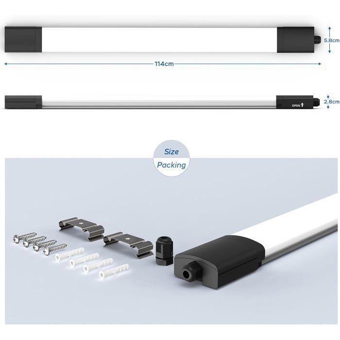 【Étanche IP65】 Notre neon led 150 cm dispose d'une classification de protection IP65, offrant un meilleur rapport qualité-prix par rapport aux autres neon led sur le marché. Tube Led LEOEU 45W Neon LED 150CM, Tube Garage 5000 LM, Réglette Neon Led 120 Cm Paramètres du produit Couleur Blanc laiteux Matériau PC Diffusion de la lumière PC One Piece Dissipation thermique Aluminium Taille 148 6,5 4,1 cm Couleur Indice de rendu 80 Valeur lumen Ampoule équivalente à 5000Lm 320W Température de couleur 4000K Angle démission de lumière 120 Tube Led Neon Led 150Cm 45W Réglette Led Étanche Ip66 Néon Tube Led... Bon matériau labat jour du plafonnier est fabriqué en PC intégralement moulé et en aluminium à dissipation thermique, bonne conductivité thermique, dissipation rapide de la chaleur, classe defficacité énergétique E. Le plafonnier LED à économie dénergie de 45 W est équivalent à une lampe à incandescence traditionnelle de 350 W, faible consommation dénergie, peut économiser jusquà 90 % de vos factures délectricité. Il suffit de laccrocher et de le brancher pour lallumer. Aucune lumière stroboscopique résistante à lhumidité avec une luminosité élevée à une température de couleur de 4000 K, sans stroboscope, avec une conception de protection des yeux. 【Pas de scintillement, pas d'éblouissement】 Notre plafonnier led utilise une technologie LED de pointe qui émet une lumière douce et sans éblouissement. Comparé aux plafonniers traditionnels, notre tube led offre un éclairage plus uniforme, éliminant les coins sombres de votre maison. De plus, il a une durée de vie allant jusqu'à 30 000 heures. Reglette neon 150 cm Reglette neon 150 cm : la sélection produits Leroy Merlin de ce samedi au meilleur prix ! Retrouvez ci-après nos 64 offres, marques, références et promotions en stock prêtes à être livrées rapidement dans nos magasins les plus proches de chez vous Il prévient efficacement la fatigue oculaire. C'est une bonne nouvelle pour les personnes ayant une déficience chromatique. Nous vous proposons un choix varié d Il convient donc parfaitement aux jardins, balcons, garages, entrepôts, etc. Même en regardant directement la lumière, vous ne ressentirez pas de fatigue oculaire ni d'inconfort. 【Pas d'angle mort】 L'angle de faisceau des plafonniers traditionnels est généralement de 120° à 160°, tandis que notre tube led a un angle de faisceau de 180°. Réglette LED 150cm IP65 Extérieur étanche, Avec Fiche Plug And Play Ou Cablee Tube Led Connectable 45w 5000lm 5000k Garage Usine Et Entrepot 95229440
