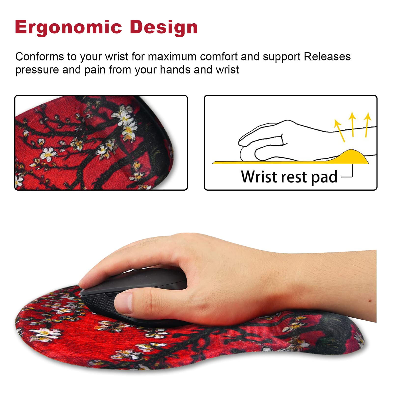Dites adieu à toutes les douleurs au poignet et à la fatigue même après de longues heures à votre ordinateur. Précision extrême : fabriqué en tissu Lycra doux de haute qualité, surface texturée et super lisse permettant un mouvement plus précis de la souris pour garantir une précision optimale et un mouvement de suivi facile. Dessous de verre - 9,9 x 9,9 cm Contenu de l'emballage : 1 support de poignet pour tapis de souris., 1 dessous de verre. Le dessous de verre mesure 9,9 x 9,9 cm, c'est un cadeau gratuit. Giecy Tapis de Souris Ergonomique Repose-Poignet et Design de Massage Il aide à résoudre les problèmes liés à l'utilisation excessive de la souris, comme le syndrome du tunnel de carpel. Le but du repose-poignet du tapis de souris est : Soulagement du trouble du stress. En outre, les bords renforcés empêchent la déformation et les dommages pour garantir une utilisation à long terme. ArtSo : impression d'art, si belle. Look élégant : nous nous consacrons à produire de beaux tapis de souris fonctionnels qui vous permettent de vous amuser tout en travaillant, étudiant et jouer sans douleur au poignet. Adhère fermement au bureau : base antidérapante en caoutchouc PU, ce tapis de souris saisira fermement votre bureau, empêchant le glissement pour vous offrir un fonctionnement stable et vous permettant de déplacer librement votre souris sans interruption, pas besoin de vous soucier que le tapis de souris ne glisse pas, afin que vous puissiez mieux concentrer votre attention lorsque vous travaillez ou étudiez. Claviers / Souris en stock sur Le produit aide à aligner parfaitement vos poignets, il les soutient également lorsque vous ne faites rien. Tapis Souris Bureau Vallée ArtSo Tapis De Souris Ergonomique Avec Gel Reposepoignet Et Base En Caoutchouc Antidérapant Pour Ordinateur PC Ordinateur Portable Femme Homme Tapis De Souris Pour La Maison, Le Bureau, Les Jeux, Le Coussin Souris Ergonomique Taille optimale : le tapis de souris mesure 230 mm x 255 mm. Ce tapis de souris avec repose-poignet s'adapte parfaitement à tous les types de souris ou de bureaux, vous aide au maximum à soulager les douleurs ou la fatigue de vos mains au poignet en vous offrant une sensation apaisante et relaxante, prévient les nerfs musculaires ou les... Caractéristiques : Matériau de remplissage du poignet : rembourrage en gel confortable. Excellente forme et taille : notre tapis de souris mesure environ 24,9 x 20,1 cm (L x l). Le fond fonctionne bien en gardant lui-même sur la surface utilisée afin qu'il ne glisse pas pendant l'utilisation. Maintient les poignets en position neutre. Protégez votre poignet : le repose-poignet ergonomique doux rempli de gel offre un bon toucher et un soutien efficace pour votre poignet, assurant un maximum de confort.