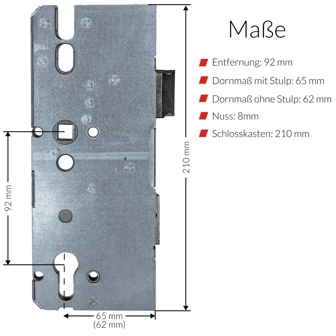 Si vous souhaitez calculer la mesure sans la plaque frontale, vous devez soustraire 3 mm. La serrure à mortaiser / serrure de réparation pour verrouillages multipoints de KFV est polyvalente et convient notamment à toutes les variantes avec pêne à rouleau, pêne pivotant ou pêne dormant Veuillez prendre en compte les points de rivet nécessaires sur votre serrure défectueuse. Serrure 3 Points Serrure De Réparation KFV 8092 | Serrure à Mortaiser Pour Rénovation, Pour Verrouillages Multipoints - Boîtier De Serrure Pour Réparation Ou Remise En état | Entraxe 92 Mm, Profondeur Du Carré 65 Mm Cremone Fenetre Pvc Serrure de réparation KFV 8092 | Serrure à mortaiser pour rénovation, pour verrouillages multipoints - Boîtier de serrure pour réparation ou Cette serrure mortaiser Vachette est id ale pour les portes de Salle de Bain et portes de WC. Sa fonction condamnation permet le verrouillage par bouton 1 tour. Elle est compatible avec les portes bois, m tal et aluminimum. Gr ce ses trous de fixation traversants elle est compatible tous les types de poign es, sur plaque ou sur rosace Par exemple, 55 mm = 52 mm Boîtiers centraux de serrures KFV action par cylindre pour le SAV 45 / 92 | Fernand Avec cette serrure de porte d’entrée, les systèmes de verrouillage multipoints KFV peuvent être réparés lorsque seule la serrure principale est défectueuse | Grâce aux outils appropriés, les anciens rivets peuvent être retirés et la serrure montée avec les rivets fournis Comparez-les aux dimensions de la serrure de réparation souhaitée Contenu de la livraison : serrure principale / serrure de réparation pour portes d’entrée avec verrouillage multipoints | 3 rivets et vis en acier inoxydable spécial