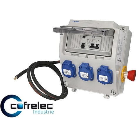 - 3 prises 16A, protection étanche pour une utilisation en extérieur. équipé de prises domestiques et d’une sortie USB pour une utilisation sur chantier. - Arrêt d'urgence type coup de poing, protection maximale contre les surcharges. - ELECdirect Vente Matériel Électrique - Coffret de Distribution Monophasé avec Prises USB Sécurité maximale Conforme à la norme NF C15-100, les coffrets monophasés ou triphasés offrent une protection fiable avec un disjoncteur différentiel intégré et un arrêt d'urgence type coup de poing pour une utilisation en toute sécurité. Coffret conforme à la norme NF C15-100, équipé de prises domestiques et d’une sortie USB pour une utilisation sur chantier. 7 PRISES TRIPHASÉ/MONOPHASÉ — 6× 16 A P/N/T IP54 + 1× 16 A 3P+N+T 400 V IP44 : distribution sûre pour étages, chantiers et événements. Coffret Avec Arrêt D'urgence Coffret De Chantier Monophasé Transportable Avec Arrêt D'urgence Facom Coffret Coffret d'Atelier ou de Chantier avec Prises 16A Coffret conforme à la norme NF C15-100, conçu pour des raccordements en atelier ou sur chantier. Coffret Triphasé et Monophasé 7 Prises Coffret de chantier avec 7 prises, conçu pour des raccordements à haute puissance. - 4 prises 230V + 1 prise USB. Coffret de chantier triphasé avec 7 prises , livraison gratuite en 24/48 heures Promo Coffret De Chantier 4 Prises Nf 250v - Arrêt D'urgence - 2 M H07rnf 3g2,5 chez DomPro... Coffret mobile ~410×310×155 mm ; câble non fourni. FABRICATION FRANÇAISE — Conforme NF C 15-100, marque Carré Rouge ; garantie 2 ans. PROTECTION COMPLÈTE — Interrupteur différentiel 4P 40 A 30 mA en tête + 2 disjoncteurs P/N 16 A 6 kA (courbe C) + 1 disjoncteur 4P 16 A 6 kA ; bornier de terre intégré Description · 1 bouton-poussoir arrêt d'urgence · 1 interrupteur différentiel 30mA - 230/415V - 40A - 4 pôles - Type AC · 1 disjoncteur divisionnaire 32A/415V - 4... Coffret Monophasé 16A avec Prises Étanches Coffret conforme à la norme NF C15-100, idéal pour les chantiers nécessitant des raccordements temporaires en extérieur. PUISSANT & PRATIQUE — 9 kW sous 400 V (40 A). - Enveloppe robuste, avec pied en acier galvanisé pour une grande stabilité. Fabriqué en France Assemblé dans nos ateliers en France, ce coffret combine qualité et sécurité pour vos projets professionnels. Pourquoi les arrêts d'urgence sont essentiels sur les coffrets de