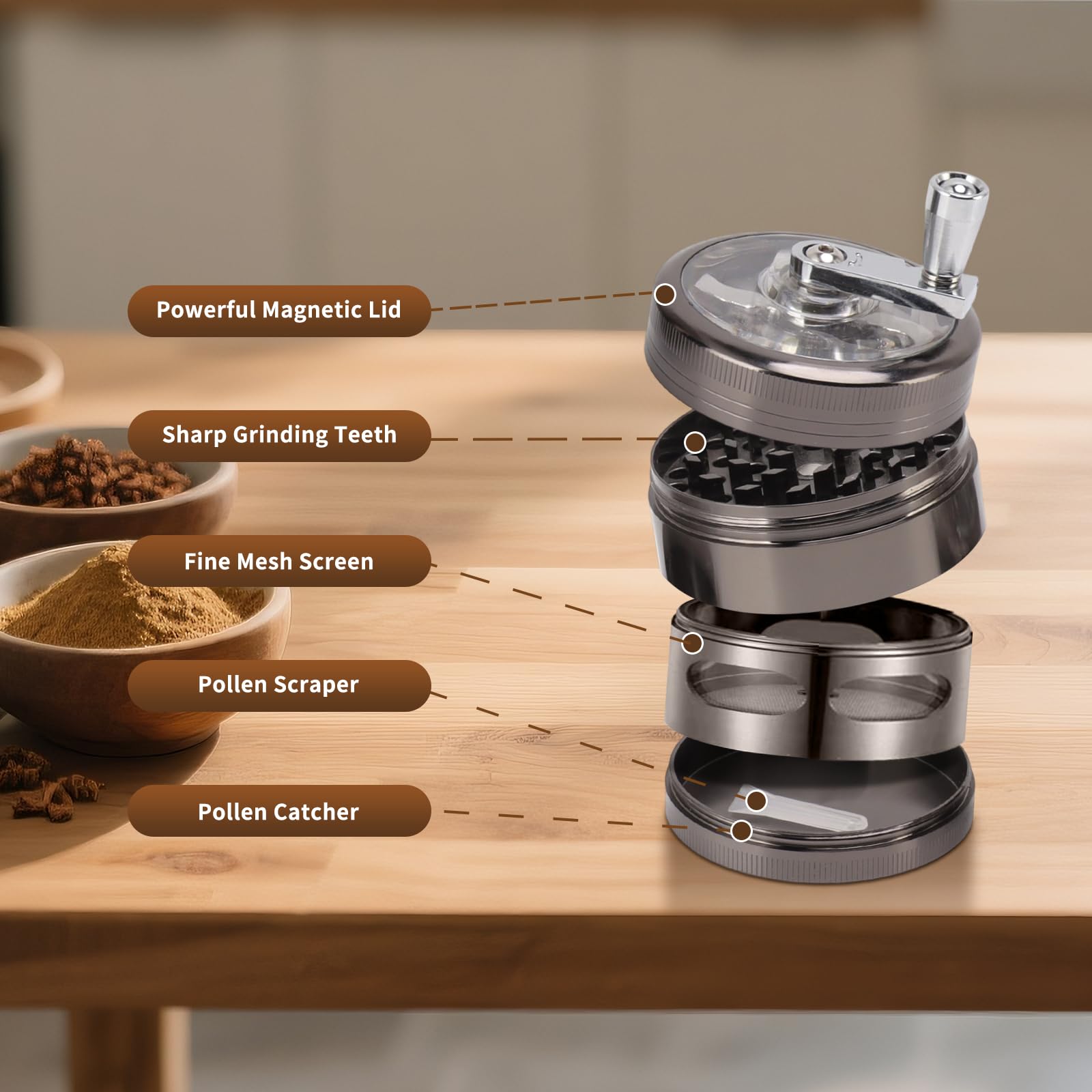 Idéal pour une utilisation dans la cuisine ou en déplacement. Moulin Pour Herbe 2 Grinders 63mm - Moulin à Herbes Et Épices Avec Grattoir - Dents Diamant, Aimant, - Pour Weed, Pollen, Condiments Alliage Zinc Couvercle magnétique et collecteur de pollenLe couvercle magnétique assure une bonne tenue et évite les déversements. Moulin Herbes Sèches Thé Cadeau Moulin à épices 4 Pièces Céramique Blanc - Avec Grattoir à Pollen 63mm Grinder 4 Parties Polyvalent et portableGrâce à son design compact, le grinder est facile à transporter et idéal pour une utilisation à la maison, lors de festivals ou en déplacement. Ce moulin à herbes (63 mm x 59 mm) est compact et léger (160 g) pour un rangement et un transport faciles. Ce broyeur à tabac est adapté pour broyer... Parfait comme cadeau pour les amateurs d'herbes et les gourmets. La construction bien pensée en 4 parties sépare les particules les plus fines et facilite le nettoyage. Matériau robuste et durableFabriqué en acier inoxydable de haute qualité, ce grinder offre une stabilité et une résistance à la corrosion exceptionnelles.