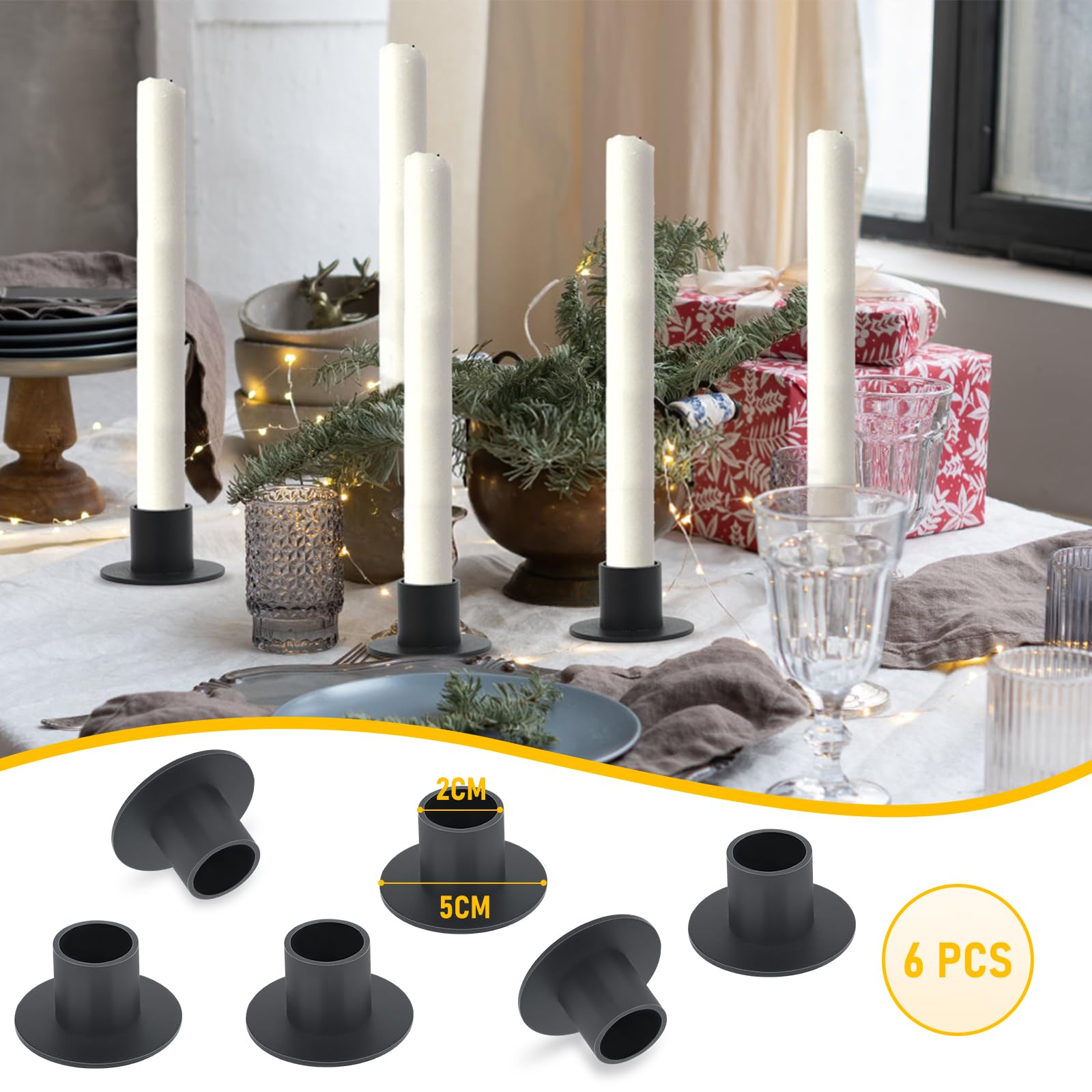 Caractéristiques du produit : ● Couleur : noir., ● Matériau : fer. En bas, il y a un support antidérapant qui peut réduire les frottements et protéger les meubles. ● Poids du colis : 395 g. Le bougeoir bas mesure 6 x 9 cm, le bougeoir haut mesure 6 x 12 cm, et la base du plateau mesure 38 x 14 cm. L'ensemble du chandelier est fait à la main avec du bois d'acacia naturel, la surface est peinte en gris, il ne rouille pas et ne se fissure pas, il est sûr et facile à utiliser Matériaux de haute qualité : fabriqués en fer de haute qualité, nos bougeoirs sont durables et durables, assurant votre atmosphère de dîner aux chandelles... Dîner Aux Chandelles Dans Le Lac Dîner Aux Chandelles Sur Une Plage Dîner Romantique Avec Vue Dimensions du produit : 8 × 8 × 6,4 cm. Chandelier Bougeoir Décoration Salon - Ensemble De 6 Bougeoirs Avec Bougeoirs À Pointe En Laiton Décoration Table Dîner Maria[H495] - Maison Structure de surface claire, pas facile à rouiller et à fissurer, durable. Le bougeoir est en fer, soudé à la main et chauffé pour la peinture, et les joints de soudure sont solides. Convient pour les mariages, restaurants, cafés, hôtels, décorations de fête, etc.