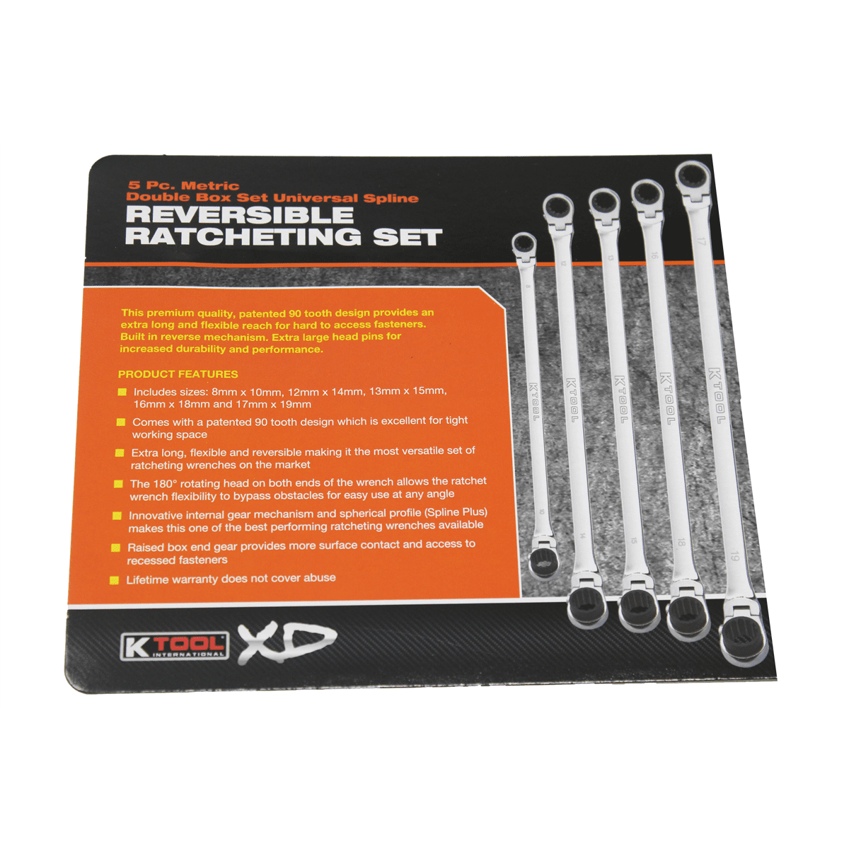Design universel : le design polyvalent de cannelure universelle s'adapte à une variété de types de fixation, ce qui le rend compatible avec les applications métriques et standard Aazon.co: K Tool International 5pc et XL Dbl Box Rat Flex Rev Spline... Plateau de rangement noir durable : livré avec un plateau noir robuste pour un rangement et une organisation faciles, gardant vos clés bien rangées pour un accès rapide lors des travaux de réparation exigeants Têtes à cliquet réversibles : dispose de mécanismes à cliquet réversibles à 90 dents qui permettent un serrage et un desserrage précis et rapides, même dans les espaces restreints, avec un arc de balancement minimal de 4 degrés Promo Lot De 5 Clés à Cliquet Workzone Chez Aldi Basics Lot de 5 clés à cliquet pliables, système métrique Ce design breveté à 90 dents de qualité supérieure offre une portée extra longue et flexible pour les fixations difficiles d'accès. Goupilles de tête extra larges pour une durabilité et une performance accrues.
