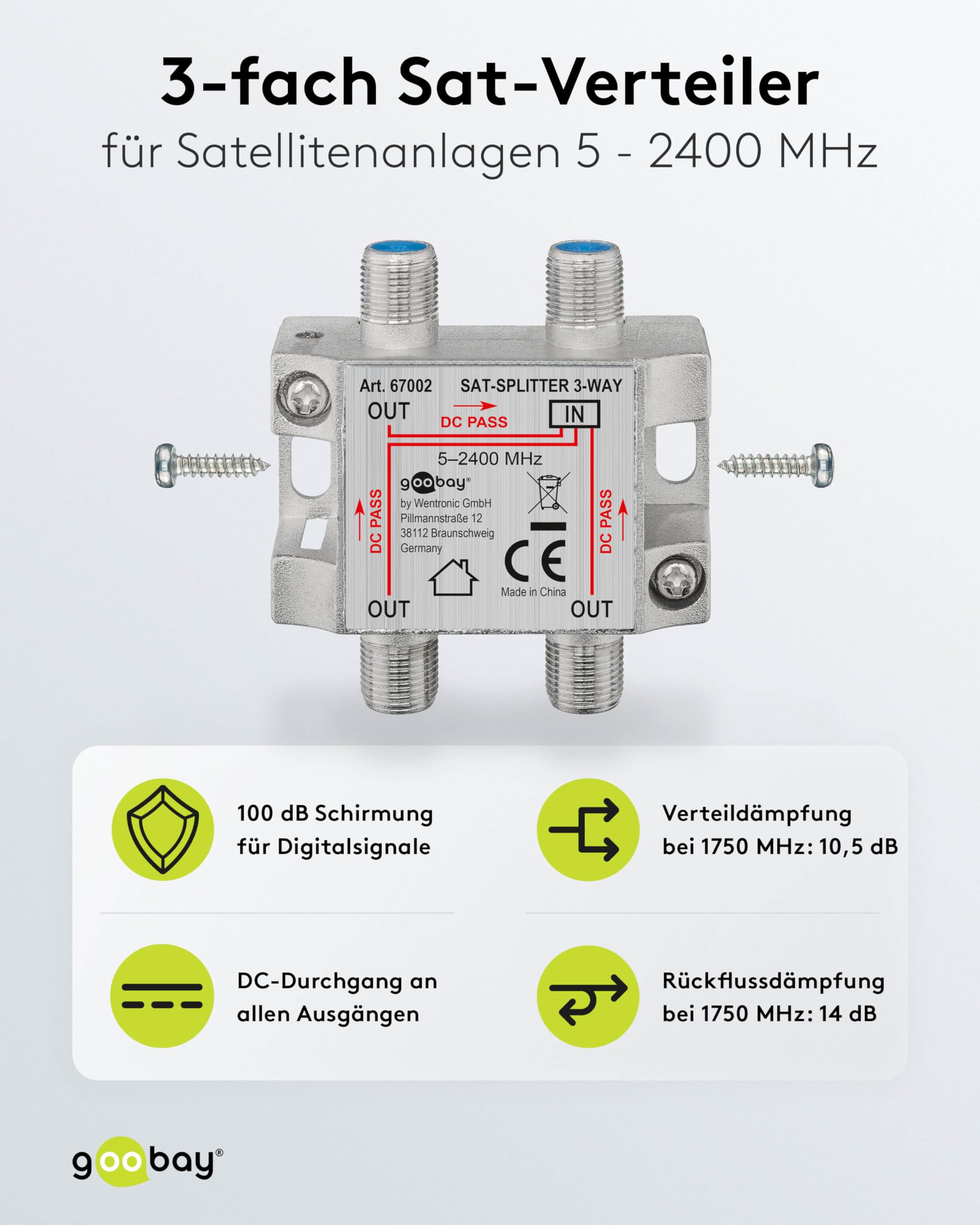 Goobay Multischalter 5/8 Quad & Quattro LNB tauglich für 1 Sat & 8 GOOBAY Répartiteur SAT, triple pour dispositifs de repérage par satellite 5 MHz à 2450 MHz - Nombre de sorties : pour dispositifs de repérage par satellite 5 MHz à Nombre de sorties : pour dispositifs de repérage par satellite 5 MHz à 2450 MHz raccords F blindage 100 dB pour signaux numériques Atténuation de la répartition à 1 750 MHz: 10,5 dB Goobay 67264 SAT ultischalter 9 Eingänge / 4 Ausgänge, Verteiler für... Répartiteur Tv / SAT 4 Sorties RJ45 | Leroy Merlin Feliway Chats Blindage 100 dB pour signaux numériques Passage CC au niveau de tous les raccords