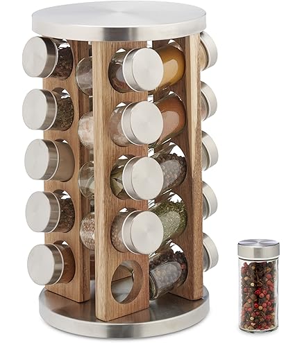 Fabriquée à partir de bambou durable, cette étagère à épices de comptoir allie style et fonctionnalité. Ensemble tout compris : comprend 16 bocaux en verre hermétiques, des cuillères à mesurer, un entonnoir et des étiquettes de style craie pour un organisateur d'épices de cuisine bien rangé et fonctionnel. Excellent cadeau pour les chefs à domicile Étagère à épices en bambou pour armoire de cuisine, tablette 【Bambou et verre de qualité supérieure】Étagère à épices en bambou respectueux de l'environnement et durable avec bocaux en verre transparent – Sans danger pour les épices, non toxique et facile à nettoyer. étagère à épices Réglable Salter BW12777EU7 En Bambou Rack épices - Rotatif, 16 Bocaux Inclus, Couvercles à Visser, Fraîcheur Longue Durée, Organiseur D'épices De Comptoir étagère Pour épices Sa taille compacte s'adapte parfaitement aux comptoirs de cuisine, tandis que le design rotatif maximise l'espace. Rotation fluide à 360° : étagère à épices rotative avec une base robuste pour un accès rapide à tous les assaisonnements – fini les plans de travail encombrés Que vous cuisiniez, cuisiez ou décorez, cet organisateur de pots à épices est pratique au bout de vos doigts. Le plateau rotatif permet d'accéder facilement à chaque pot sans devoir tout déplacer. Dimensions 17,5x17,5x29cm - parfait pour poser sur le plan de travail. Le...