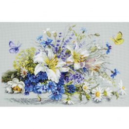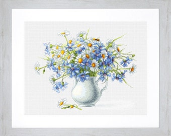 Kit contient tableau et instructions tissu Aida blanc, aiguille, 16 fils et fils de coton pré-triés sur fils à rangements. Carton avec symboles du motif , Dimensions : 24,5 x 20 cm 16 compter blanc aida Zweigart tissu , 32 Couleurs Kit broderie modele point de croix de Luca-S à broder à la main Référence LB2275 : Dimension du dessin à broder : 24,50 x 20 cm. Ce tableau à broder contient : L'aiguille à broder, La grille avec explications, Les fils mouliné, La toile aida 6.4 pts à broder blanche Kit de point de croix fleurs sauvages, bouquet de camomille et de bleuet au point x, motif point de croix compté fleurs des champs. Annonce de... Luca's Kits Kit De Point De Croix Luca-S - Bleuets Et Camomille, B2275 Broderie Point De Croix Luca Kit point de croix Luca-S BU4017 Terrasse avec fleurs 38x32cm
